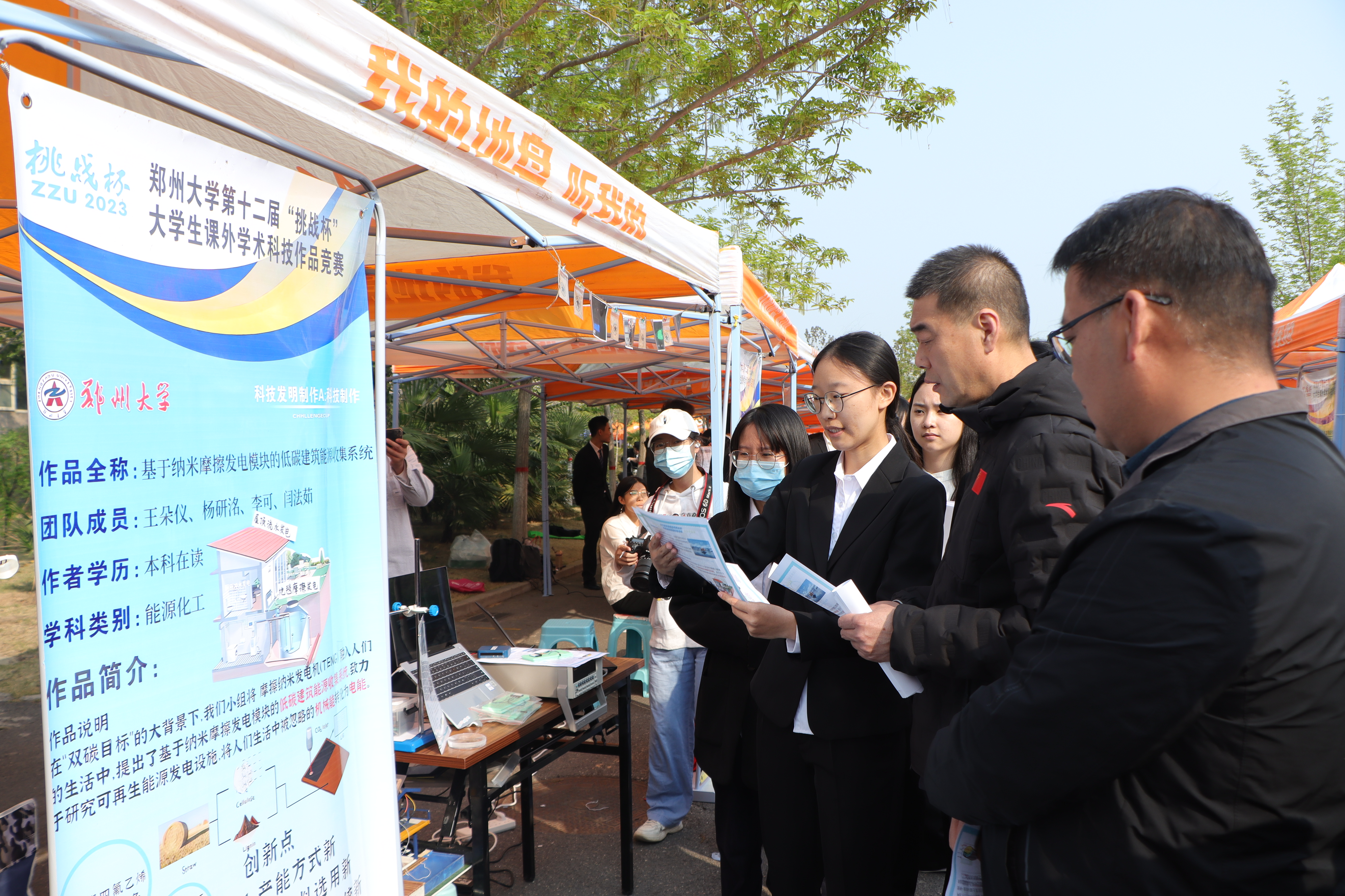本次竞赛采用室外公开布展的形式进行,受到前来观摩师生的一致好评。开幕式上,吴宏阳充分肯定了全校师生参与竞赛的科研创新热情、高度评价了参赛作品的质量。他表示,“挑战杯”是我校创新育人的重要载体,也是我校在一流大学建设中必须跑赢的一个关键赛道,希望广大同学树立远大理想、牢固树立创新意识,加强基础学习、不断提高创新本领,脚踏实地、积极投身创新实践,争做学术创新的先锋、科技创新的表率,为bat365在线中国官网登录入口一流大学建设、为中原大地起高峰、为中华民族伟大复兴做出青春贡献,谱写青春华章。