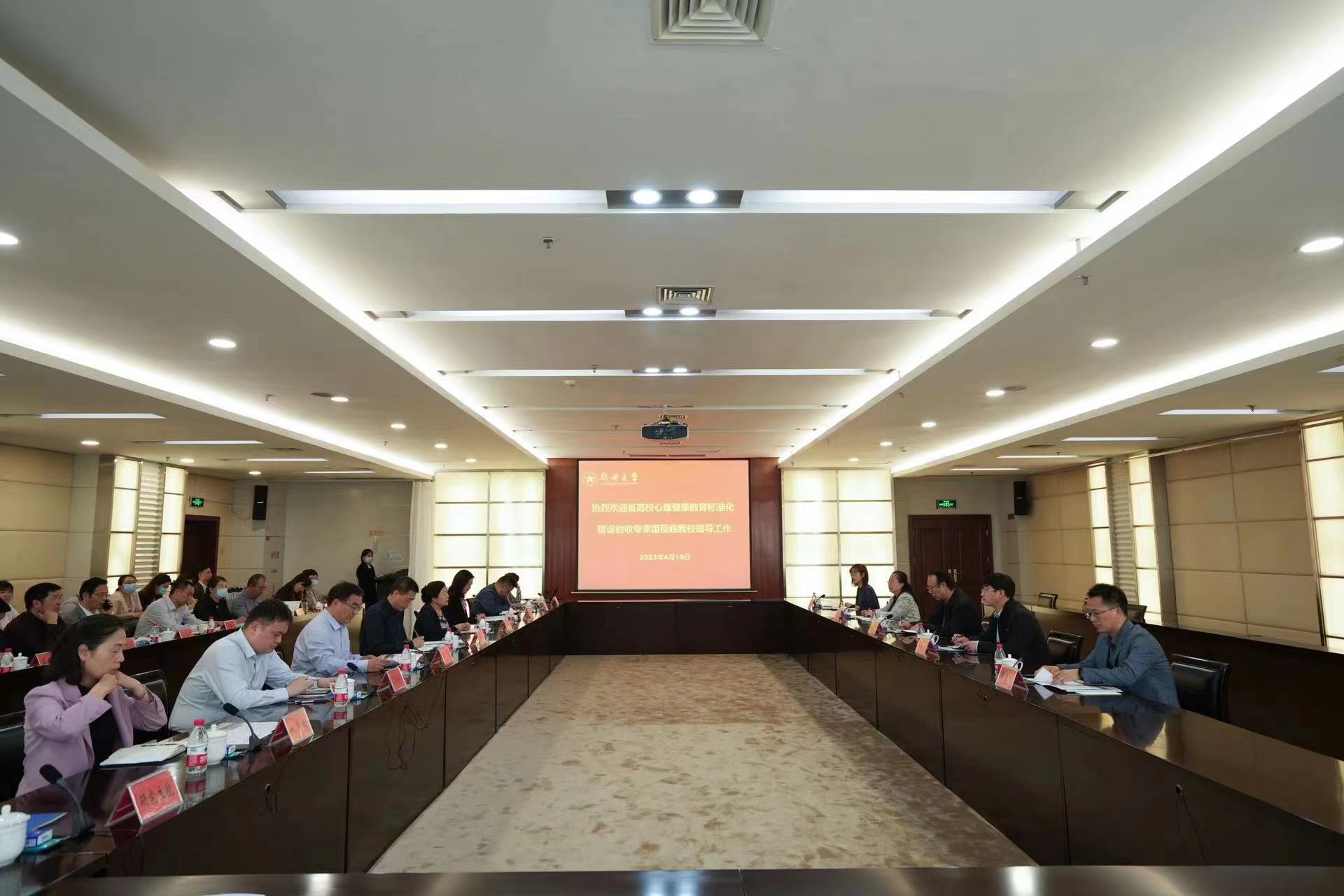 4月19日,河南省普通高等心理健康教育工作标准化建设第一验收组河南师范大学原党委书记、中国心理学会理事长赵国祥一行五人,对学校心理健康教育工作标准化建设进行考核验收。验收汇报会在主校区召开。校党委副书记吴宏阳、副校长张倩红出席会议,党委宣传部、校团委、人事处、教务处、学生处、心理健康教育中心、研究生院、财务处、保卫处、校医院等单位负责同志和学院党委书记以及师生代表参加会议。会议由张倩红主持。