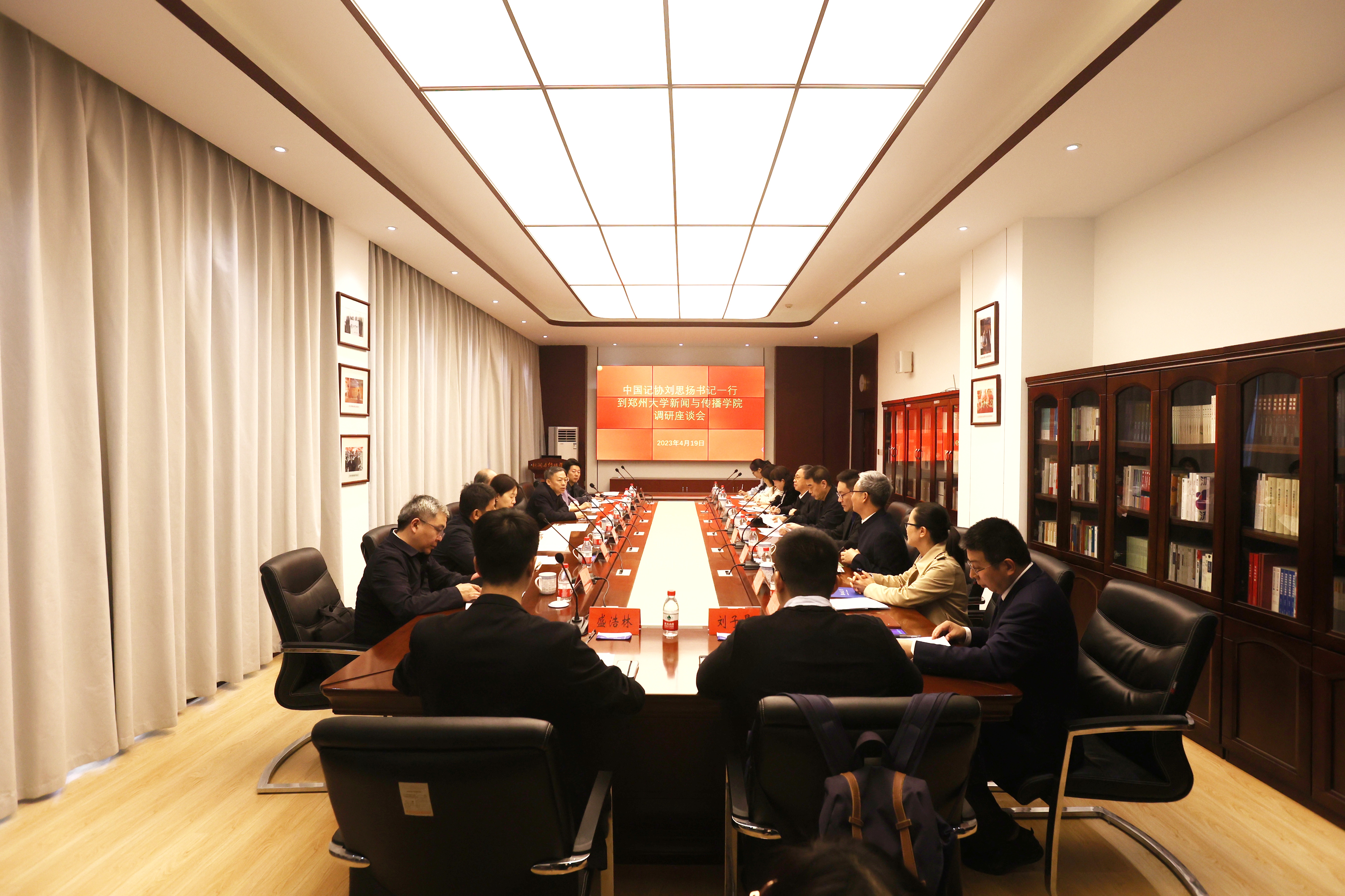 4月19日,中国记协党组书记、副主席刘思扬一行来校调研,围绕学习贯彻习近平总书记关于新闻舆论工作的重要指示精神、马克思主义新闻观教育等议题,与新闻与传播学院师生进行座谈与交流。河南省委宣传部副部长平萍,河南日报社党委书记、社长、省记协副主席刘雅鸣一同调研。bat365在线中国官网登录入口党委副书记吴宏阳,党委常委、宣传部部长厉励,新闻与传播学院、新华通讯社-bat365在线中国官网登录入口穆青研究中心主要负责同志参加座谈会。座谈会由中国记协国内部主任殷陆君主持。