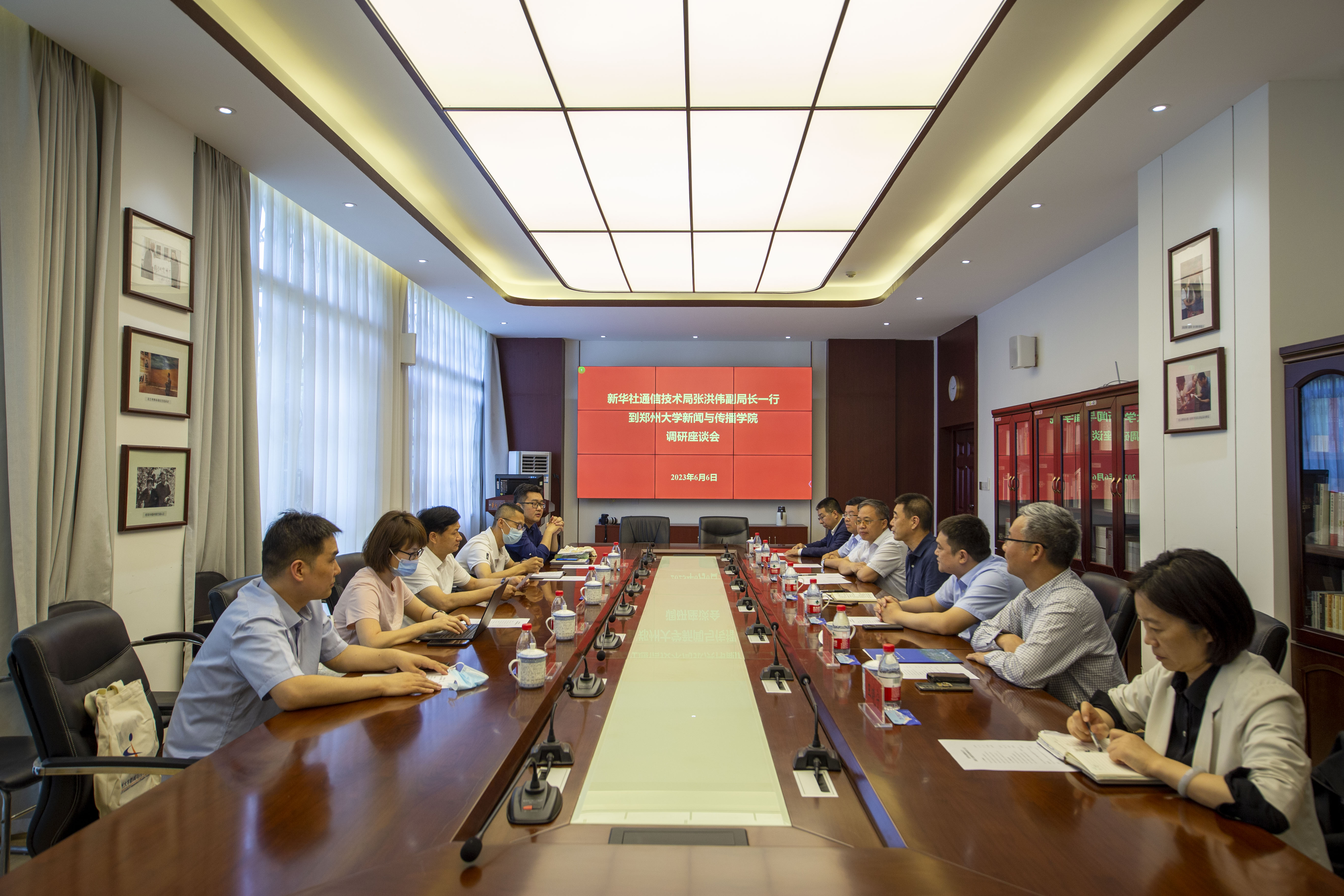6月6日上午,新华社通信技术局副局长张洪伟一行来bat365在线中国官网登录入口调研,先后在新闻与传播学院、计算机与人工智能学院进行座谈交流。校党委副书记吴宏阳及党委宣传部、新闻与传播学院、计算机与人工智能学院相关负责同志参加座谈。