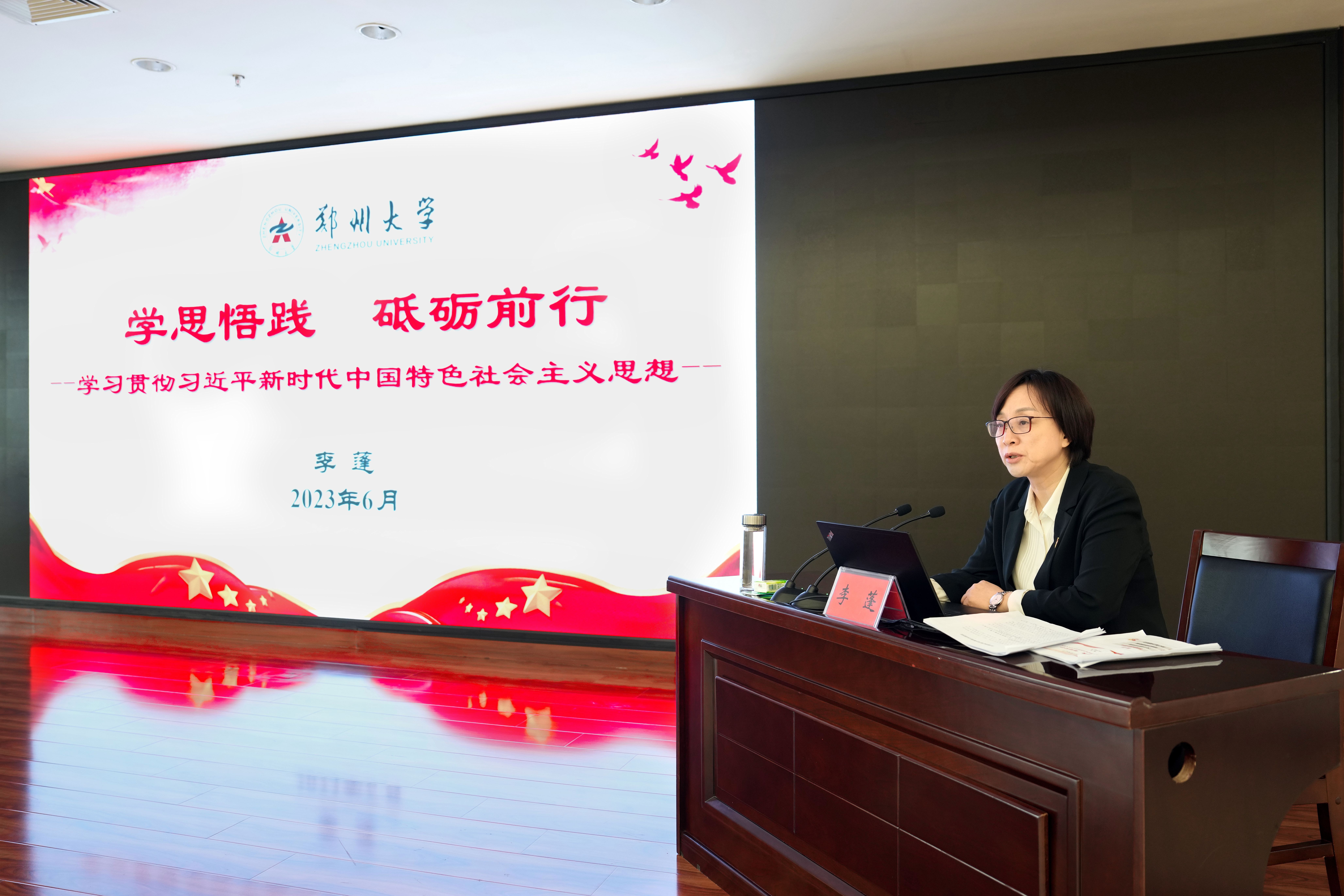 校长李蓬院士以《学思悟践 砥砺前行——学习贯彻习近平新时代中国特色社会主义思想》为题,结合近期理论学习和校内外调研的感悟,从四个方面讲授主题教育专题党课。一是学思悟践新精神,深刻认识开展主题教育的重大意义和习近平新时代中国特色社会主义思想的精髓要义,充分认识和把握习近平总书记关于科教兴国战略的重要论述,坚持科技是第一生产力、人才是第一资源、创新是第一动力,以高质量高等教育支撑中国式现代化建设。二是大兴调研找差距,把握“深、实、细、准、效”的总要求,真正做到听实话、摸实情、办实事,通过校内外调研,摸清家底、明确差距,切实推动调研成果转化,借鉴一流大学的优势与经验,走出一条独具郑大特色的一流大学建设之路。三是明确思路谱新章,以构建一流大学治理六大体系为目标,以大学治理“四不”理念为指导,牢牢把握人才培养这个根本,紧紧攥住学科平台这个龙头,稳步提升师资队伍这个核心,持续做优科研创新这个出口,努力拓宽合作交流这个窗口,始终抓住深化改革这个关键,扎实推进学校“双一流”建设。四是凝心聚力建新功,发扬习近平总书记调研河南时强调的“自力更生、艰苦创业、团结协作、无私奉献”的红旗渠精神,保持自力更生的初心使命、保持艰苦创业的进取精神、保持团结协作的工作态度、保持无私奉献的郑大情怀,进一步强化主人翁意识,扛牢一流大学建设的重担,以主题教育高质量开展推动学校事业高质量发展。