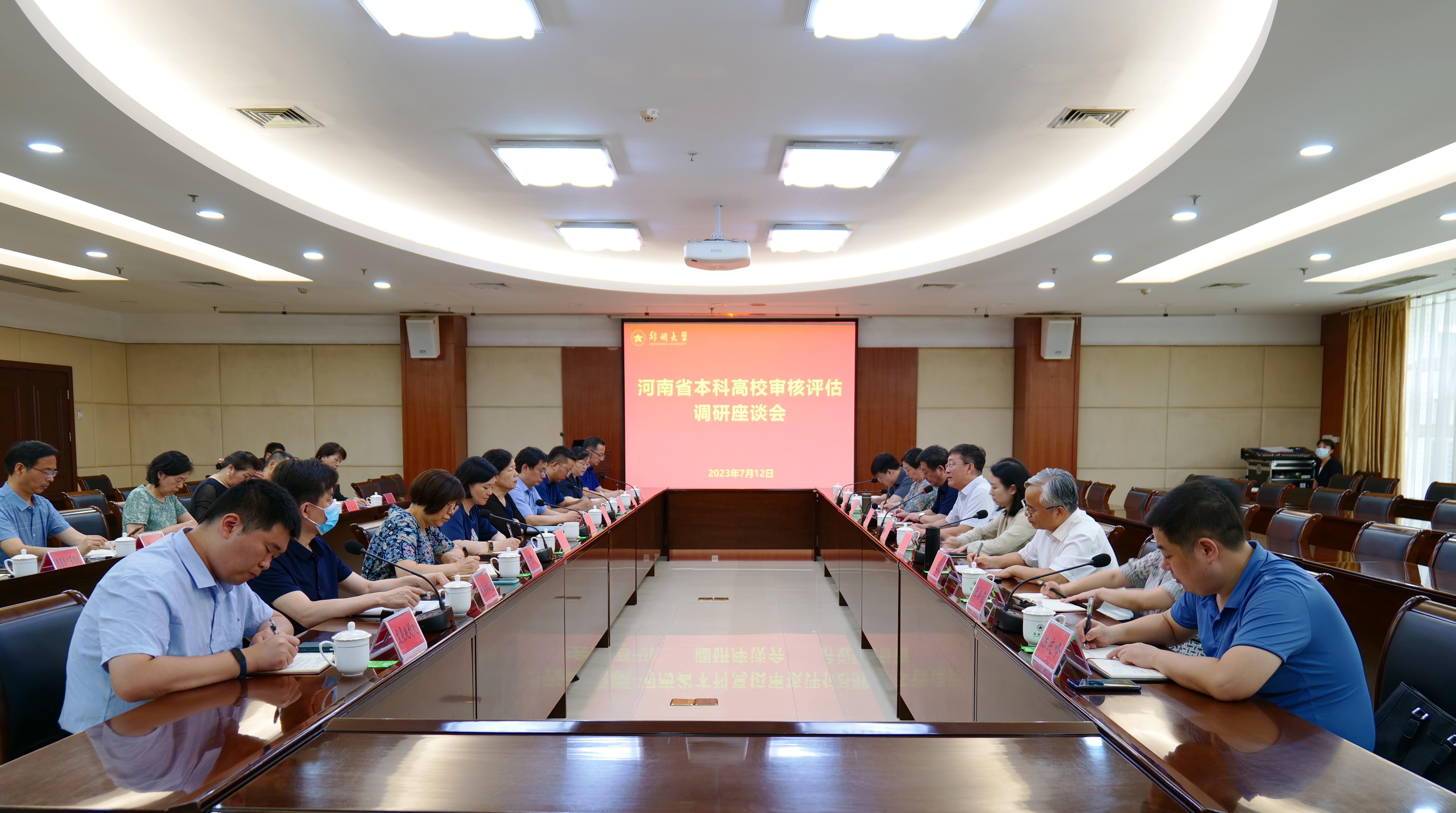 近日,教育部教育质量评估中心副主任李智、评估中心院校评估处副处长郑觅等一行来校考察,调研新一轮本科教育教学审核评估工作,并同我校和河南大学有关同志座谈交流。省教育厅高教处处长张水潮,省高等学校教育教学评估管理服务中心主任祝玉华及相关负责同志参与调研。校党委书记别荣海、校长李蓬会见李智一行,副校长张倩红参加座谈会。