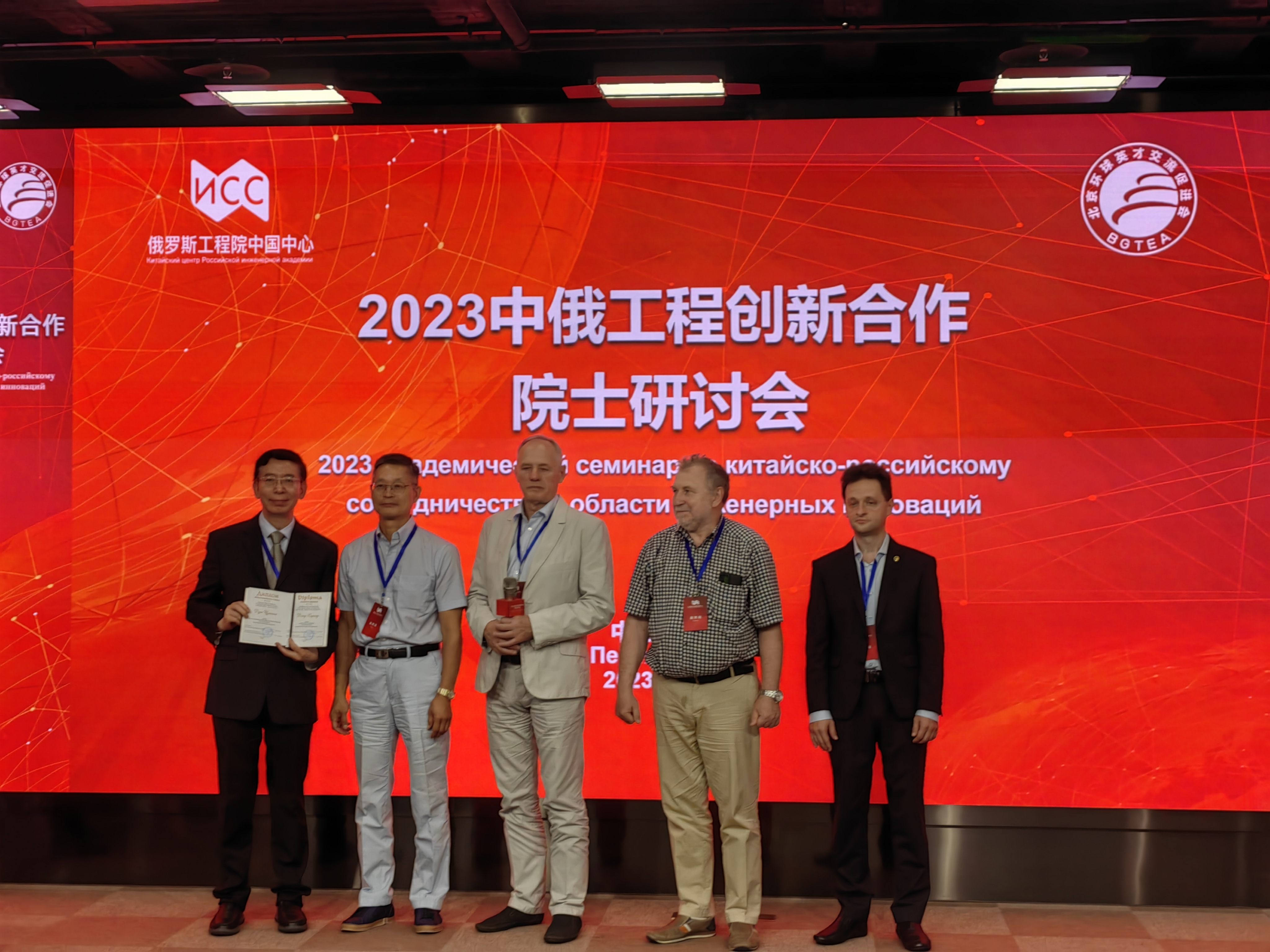 8月13日,由俄罗斯工程院、俄罗斯工程院中国中心联合举办的2023中俄工程创新合作院士研讨会在北京举行。研讨会上,新当选的俄罗斯工程院外籍院士董子钢分享了自己领域的研究成果和推动中俄创新合作的项目,俄罗斯工程院副院长瓦列里·姜等院士向董子钢教授颁发俄罗斯工程院外籍院士证书,祝贺他当选为俄罗斯工程院外籍院士(FOREIGN FULL MEMBER, ACADEMICIAN)。
