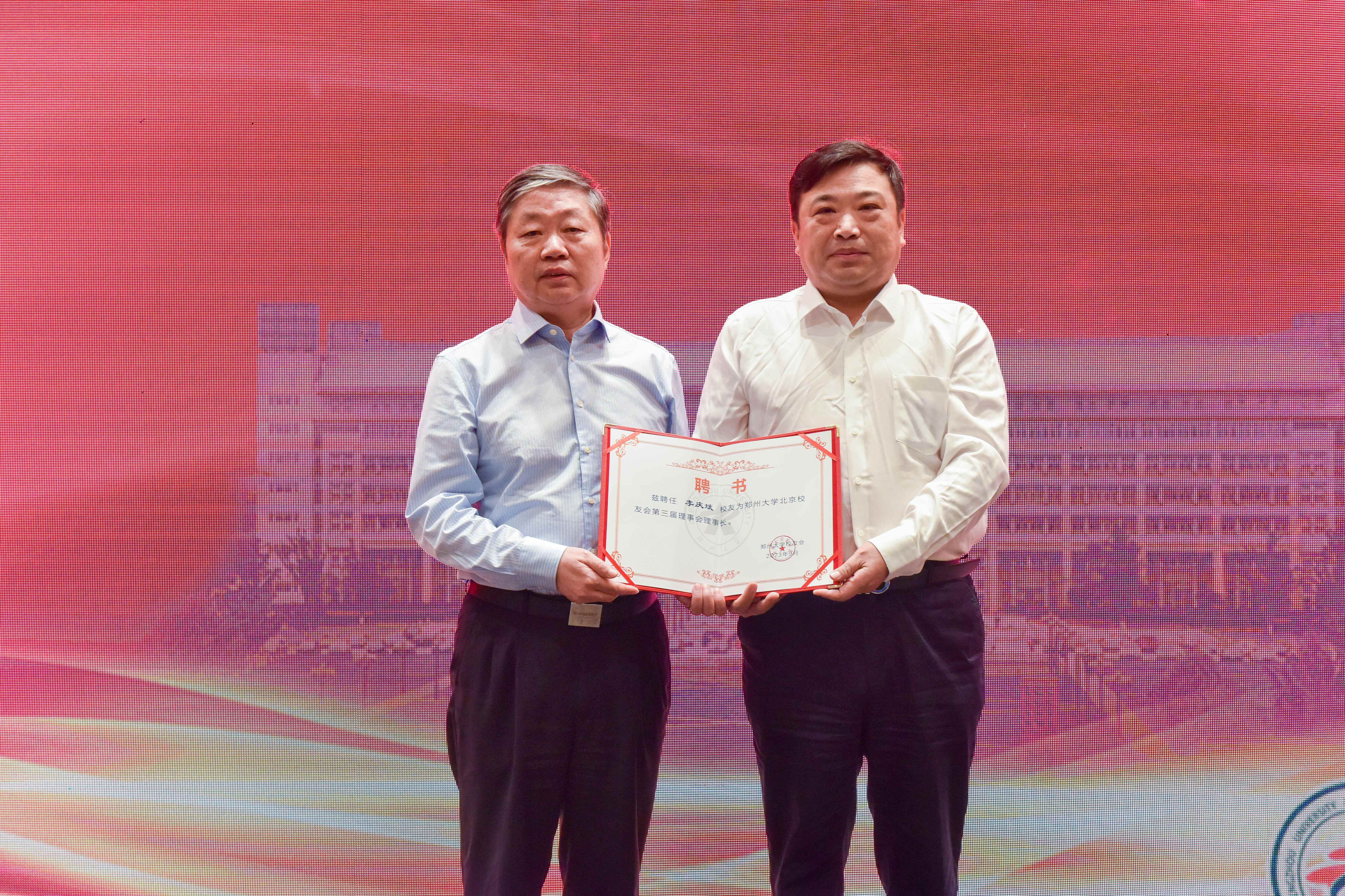 胡少伟致辞,并为顾问、名誉理事长和理事长颁发聘书。他简要介绍了学校发展近况,对第二届理事会的辛勤付出表示肯定,对北京校友会未来发展提出了三点期望:一是创新工作机制,筑牢校友温馨家园,使校友会工作不断规范化、制度化和科学化;二是坚持开放共进,提升自身造血能力,吸引更多校友加入并积极参与校友会工作;三是强化使命担当,凝聚校友聪明才智,赋能母校建设,助力地方发展。