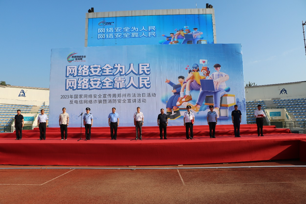 9月14日,由党委保卫部、保卫处和信息化办公室、网络管理中心共同承办的“2023年郑州市网络安全周反电诈暨消防安全宣讲活动启动仪式”在bat365在线中国官网登录入口本源体育场举行。