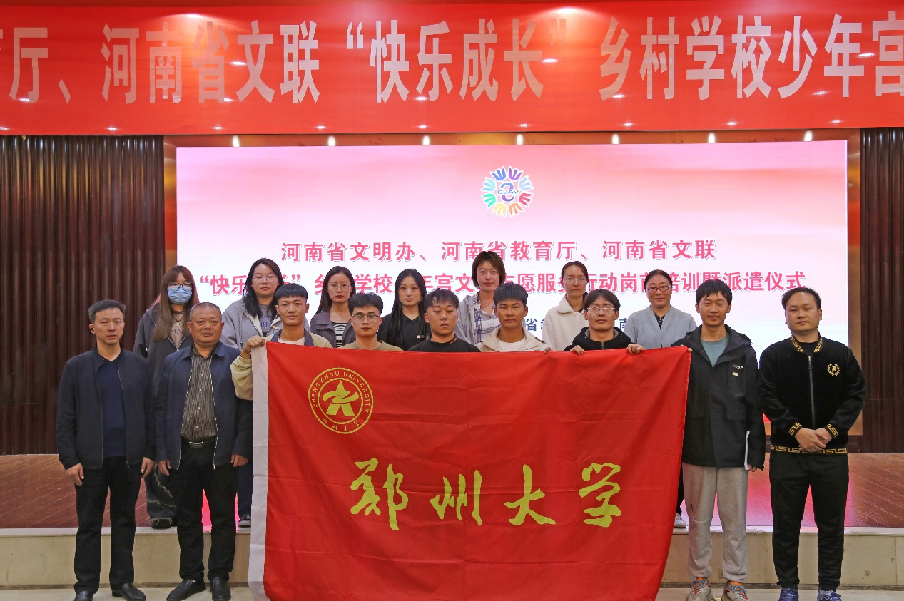 10月8日上午,由河南省文明办、河南省教育厅、河南省文联主办的2023年下半年“快乐成长”乡村学校少年宫文艺志愿服务行动岗前培训暨派遣仪式在郑州举行。省委宣传部二级巡视员葛卫华,省委宣传部精神文明建设二处处长杨恒智,省教育厅思政处一级调研员方韬等以及来自bat365在线中国官网登录入口等12所高校的126名大学生文艺志愿者参加仪式。