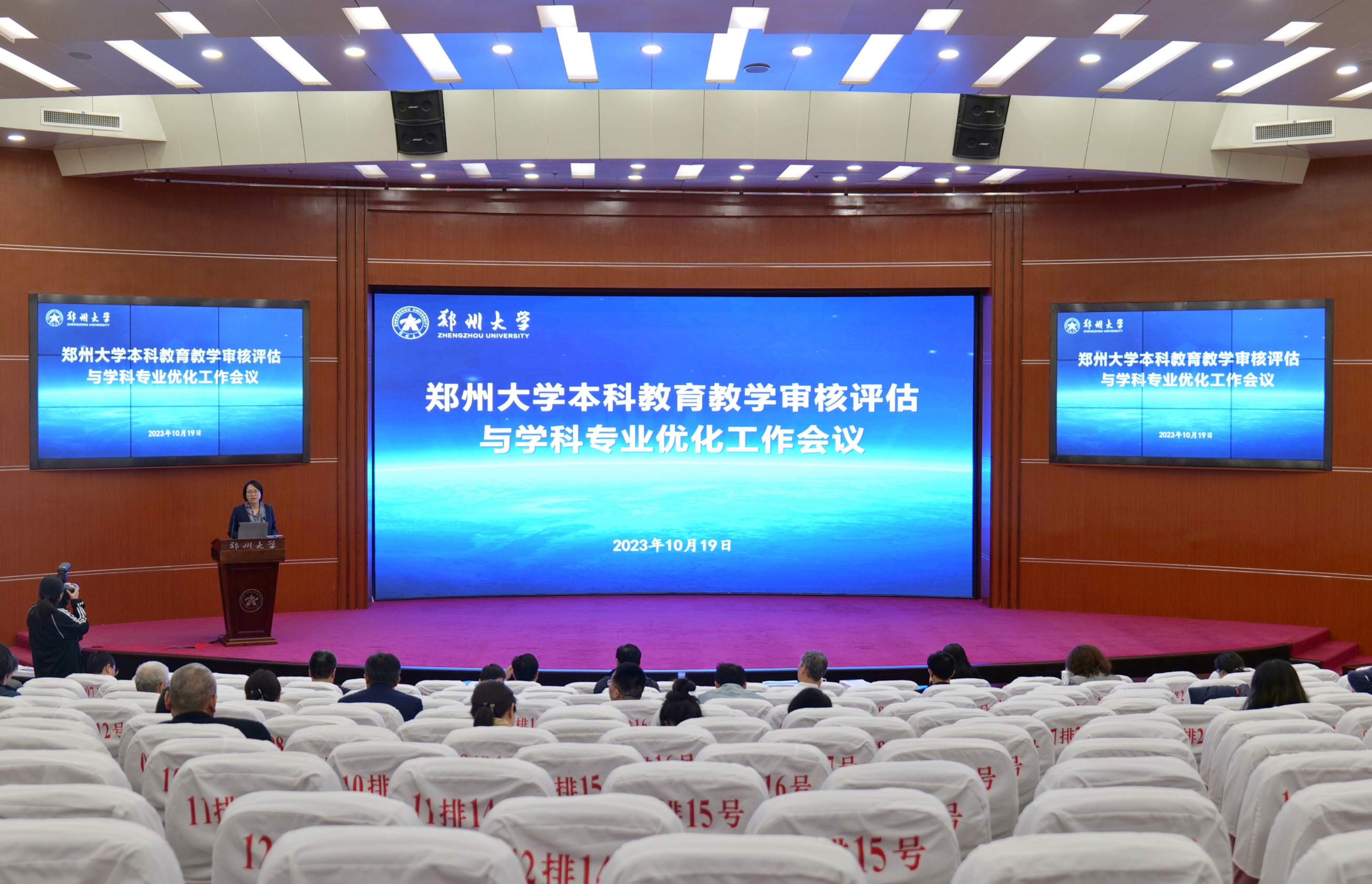 10月19日,bat365在线中国官网登录入口召开本科教育教学审核评估与学科专业优化工作会议。校领导别荣海、李蓬、张倩红、胡少伟、董子钢出席会议,相关部门负责同志和审核评估工作联络员,各本科教学学院院长、教学副院长和审核评估工作联络员,评估专家指导组全体成员,校教学督导委员会委员,教务处、评估工作办公室、招生办公室、大学生就业创业指导服务中心全体人员参加会议。会议由副校长张倩红主持。