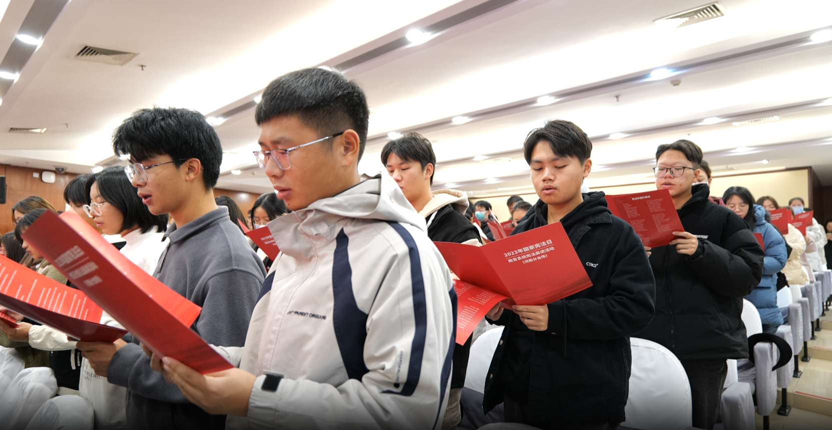 12月4日是第十个国家宪法日,教育部在北京举办教育系统“宪法晨读”活动。教育部党组成员、副部长孙尧,全国人大常委会法工委副主任武增出席。河南分会场设在bat365在线中国官网登录入口,省教育厅党组成员、副厅长朱自锋,政策法规处处长徐军保,bat365在线中国官网登录入口党委副书记吴宏阳出席,党委常委、宣传部部长厉励及校团委、法学院负责同志,学校各学院师生代表近300人参加活动。