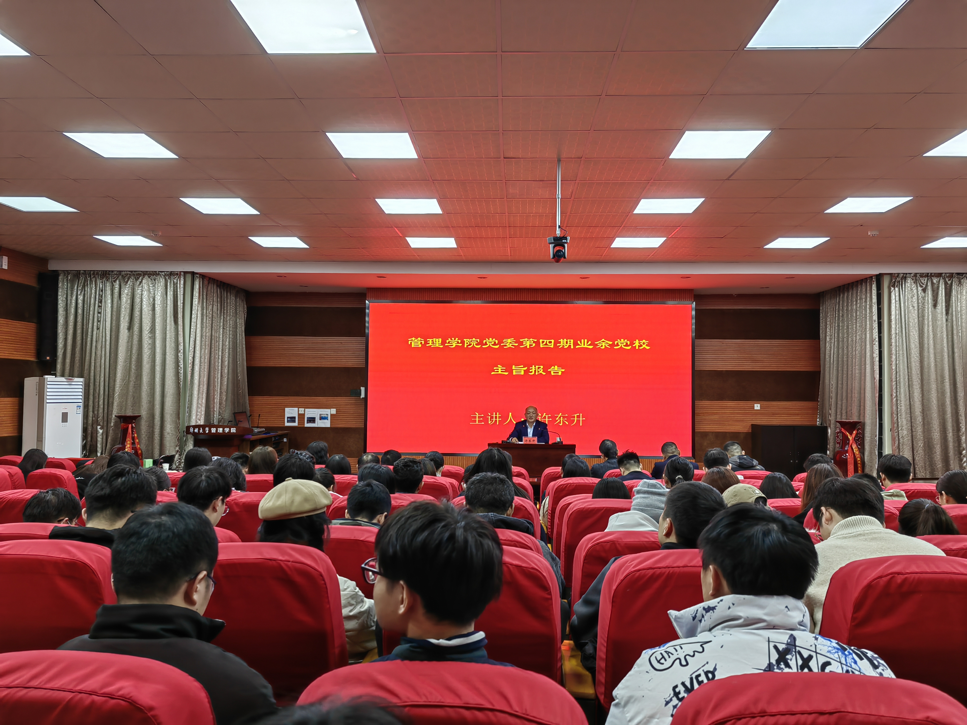12月5日,校党委常委、纪委书记(监察专员)许东升为管理学院第四期业余党校培训班讲授专题党课。管理学院党政班子、师生党支部书记以及本期70名发展对象参加活动。