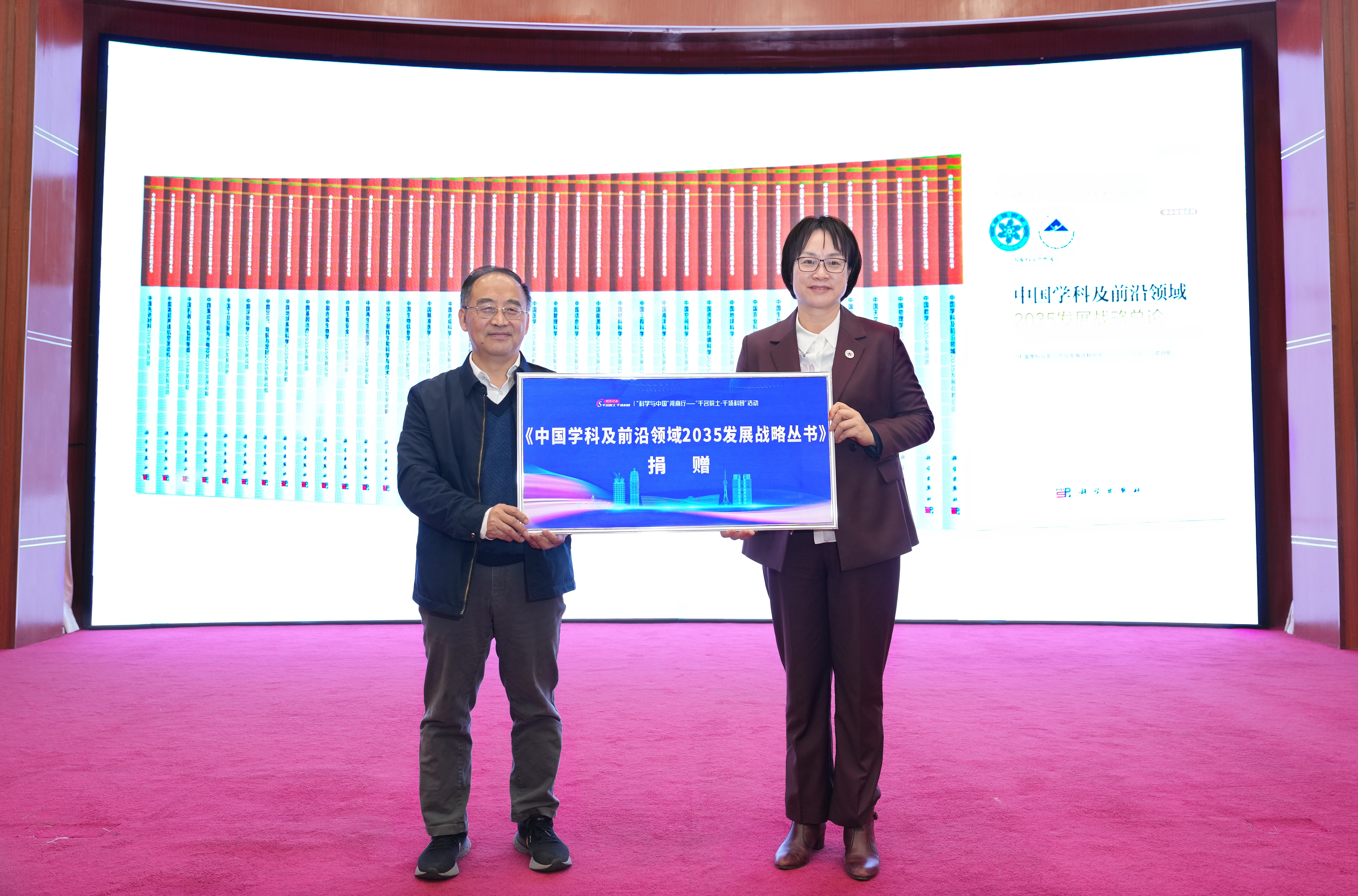 仪式上,中国科学院学部工作局向bat365在线中国官网登录入口捐赠《中国学科及前沿领域2035发展战略》丛书。