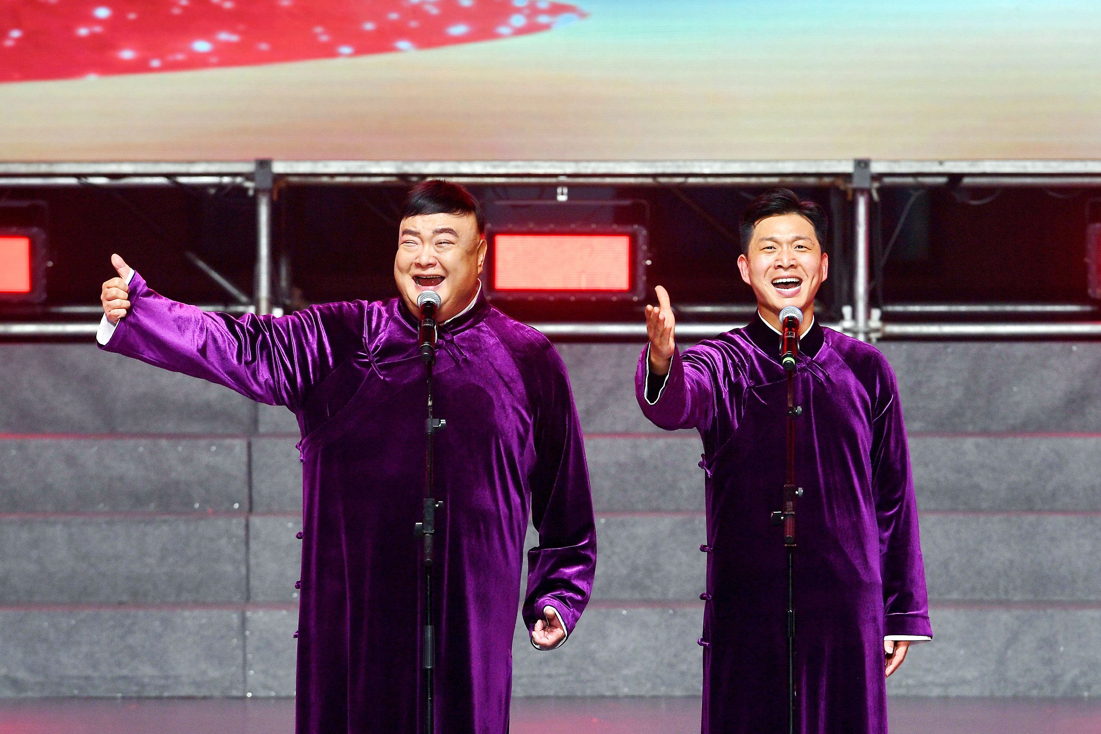中国曲协副主席、河南省曲协主席、国家一级演员、著名相声表演艺术家范军和搭档明男男表演相声