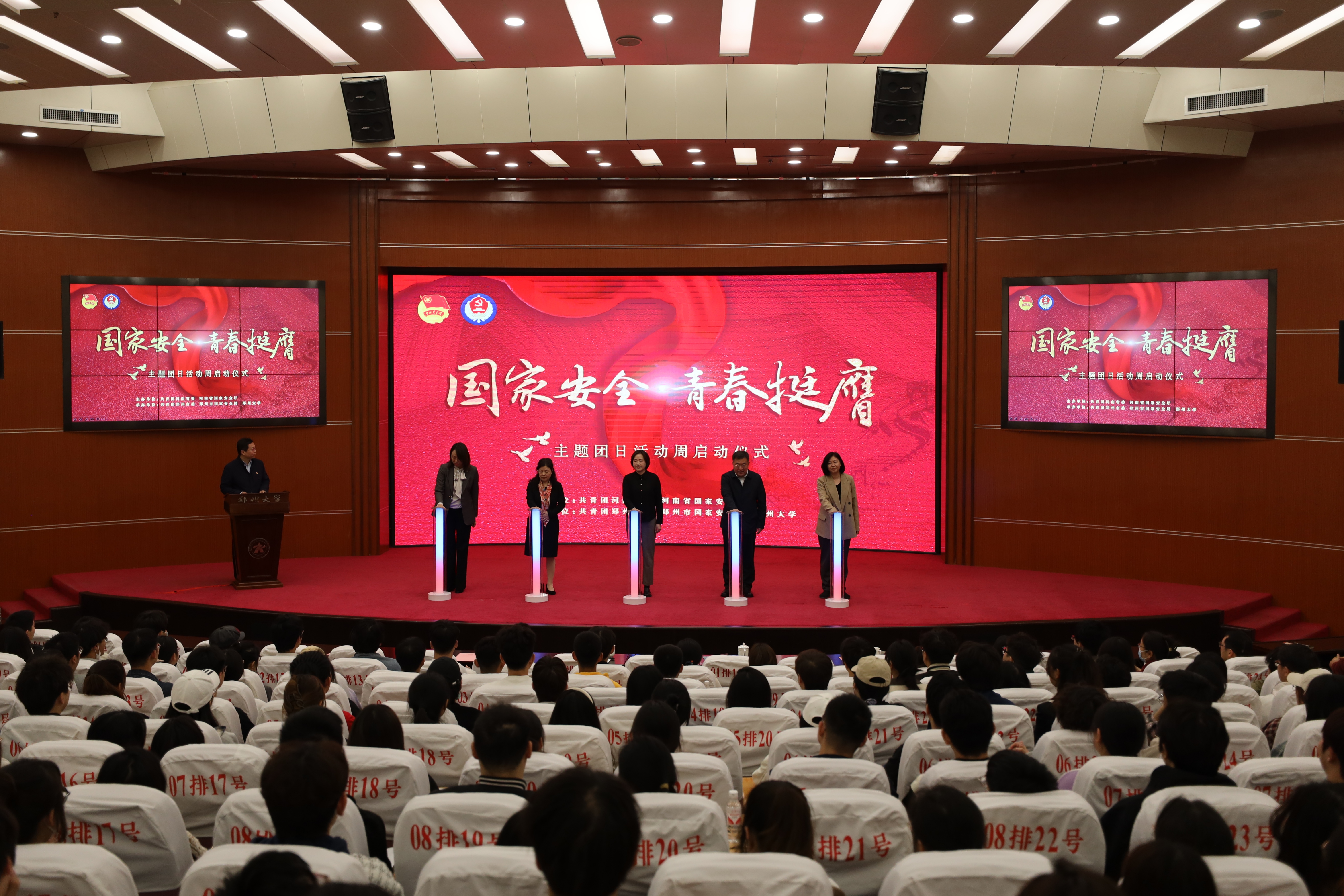 随后,胡献新、王鑫、张倩红等共同按下启动键,标志着“国家安全·青春挺膺”主题团日活动周正式启动。