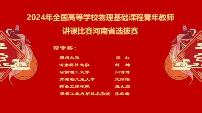 据悉,本次比赛由教育部高等学校大学物理课程教学指导委员会中南地区工作委员会和河南省物理学会联合主办,河南大学物理与电子学院承办。比赛旨在提升青年教师的教学水平,促进教学内容、教学方法和教学经验的交流,将教学改革落到实处,努力提高人才培养质量,从而推动我国物理基础课程教育教学水平的持续提高。
