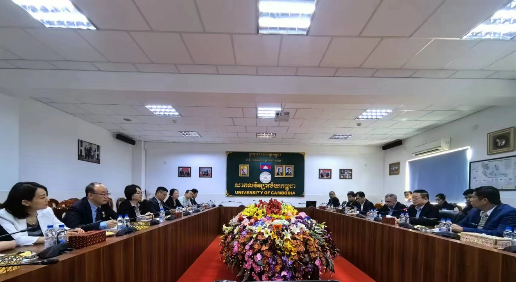 访问团一行与柬埔寨大学举行座谈会,围绕开展汉语专业2+2双学位项目、学生交换培养项目、推动柬大东盟研究中心与郑大东盟研究院合作等事宜进行深入沟通,并签署共建汉语中心、推进东盟研究的合作备忘录。