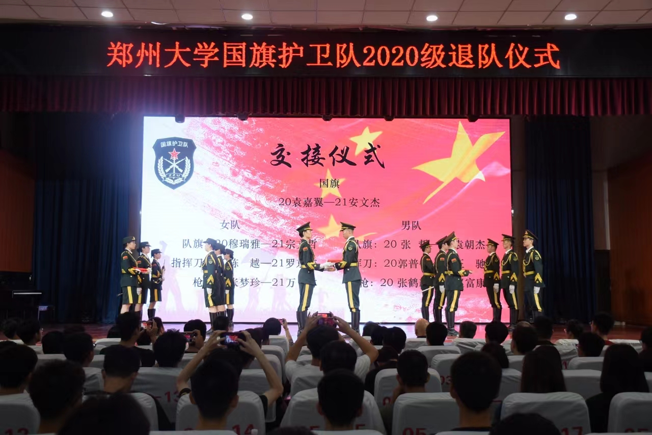 bat365在线中国官网登录入口国旗护卫队是学校精神文明建设的重要窗口,是学校爱国主义教育的一面旗帜,是学校国防思政一体化工作品牌创建的重要平台。自2004年组建,发展至今已有20年的历史,是全国高校具有较大影响力的国旗护卫队。20年的传承与坚守,承载着岁月的积淀,铭记着永恒的执着,镌刻着不懈的追求。一批批队员用赤诚守护着五星红旗,用行动凝聚着郑大学子的爱国情怀,这支队伍已锻造成为一支召之即来、来之能战、战之必胜的“硬核”队伍。进入新的发展阶段,队伍将继续砥砺前行,深化国防思政育人实效,把队伍建设融入到助力打好学科建设攻坚战的实践中,为开创一流大学建设新局面作出更大贡献。