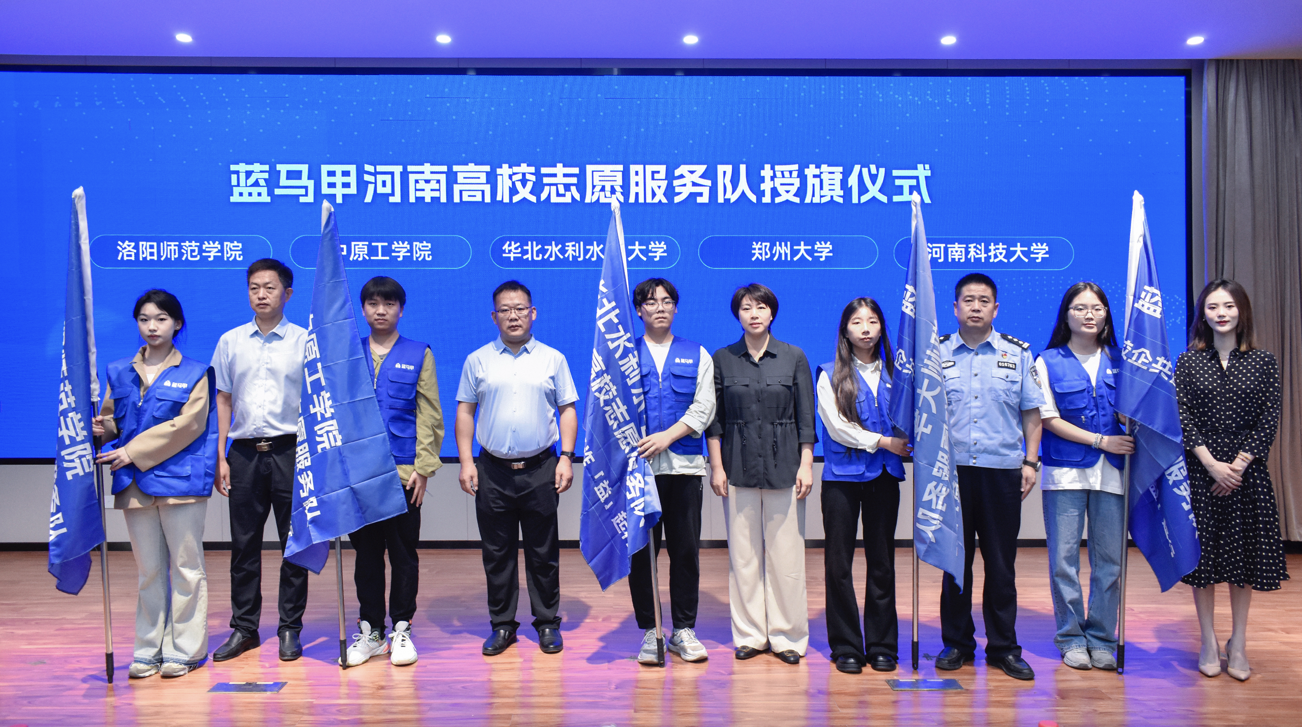 仪式上,校团委主要负责同志、郑州市公安局反诈中心和蚂蚁公益基金会蓝马甲行动专项基金管委会负责人先后致辞,教师代表和学生代表分别发言。韩冰等与会领导共同向bat365在线中国官网登录入口、华北水利水电大学、河南科技大学、中原工学院、洛阳师范学院5所学校的志愿服务队授旗。