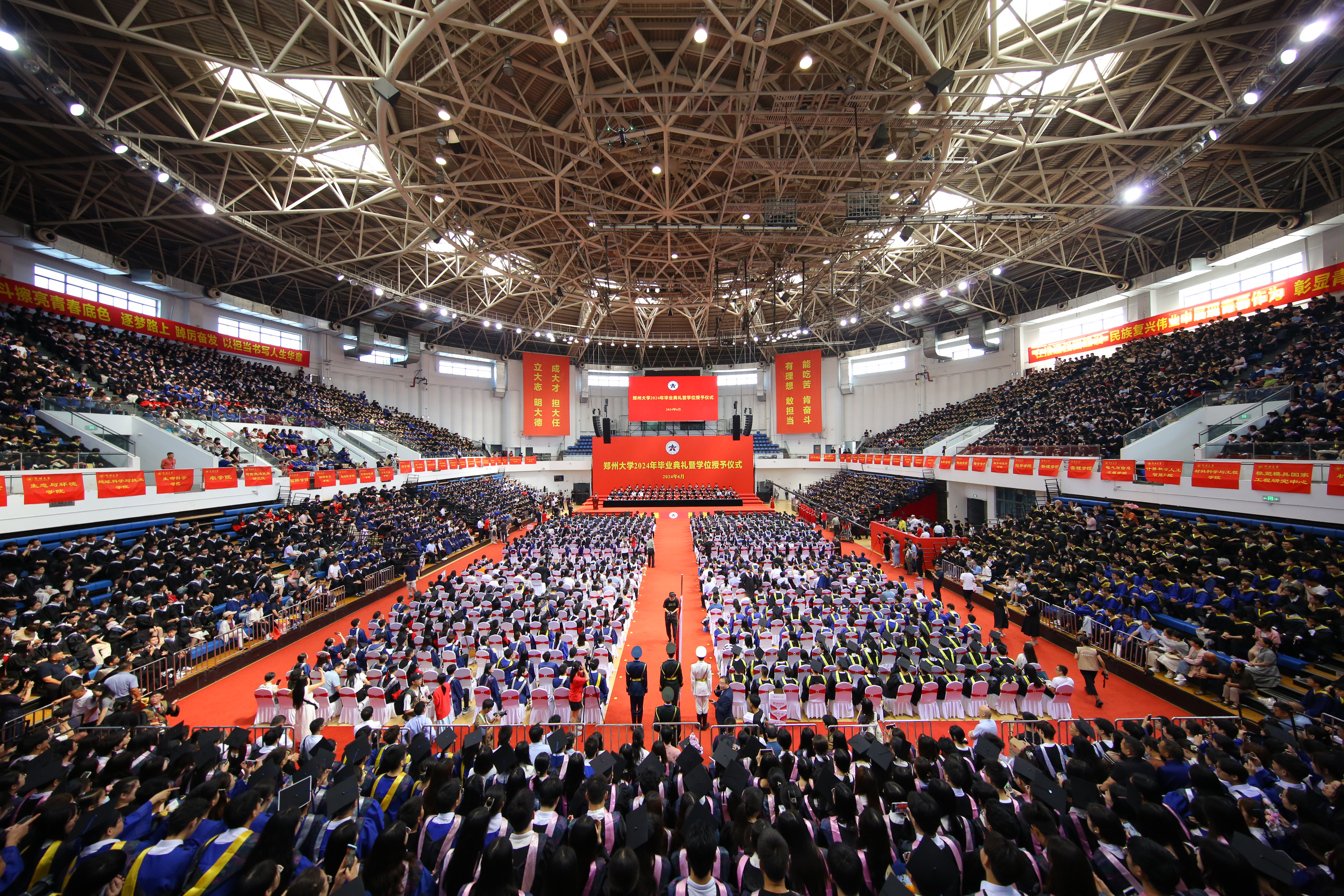 千帆竞发势如虹,蓄势扬帆破浪行。今年是新中国成立75周年,bat365在线中国官网登录入口也走过了96年的办学历程,意义非凡。希望2024届全体毕业生胸怀“国之大者”,砥砺强国之志,带着郑大人独有的精神与品格,带着盛夏的热情与勇气,把个人“小目标”融入党和国家“大蓝图”,以青春之名,赴时代之约,求是担当,追求卓越,交出一份不负韶华、不负时代、不负人民的青春答卷!(魏洪波 陈卓 摄影)