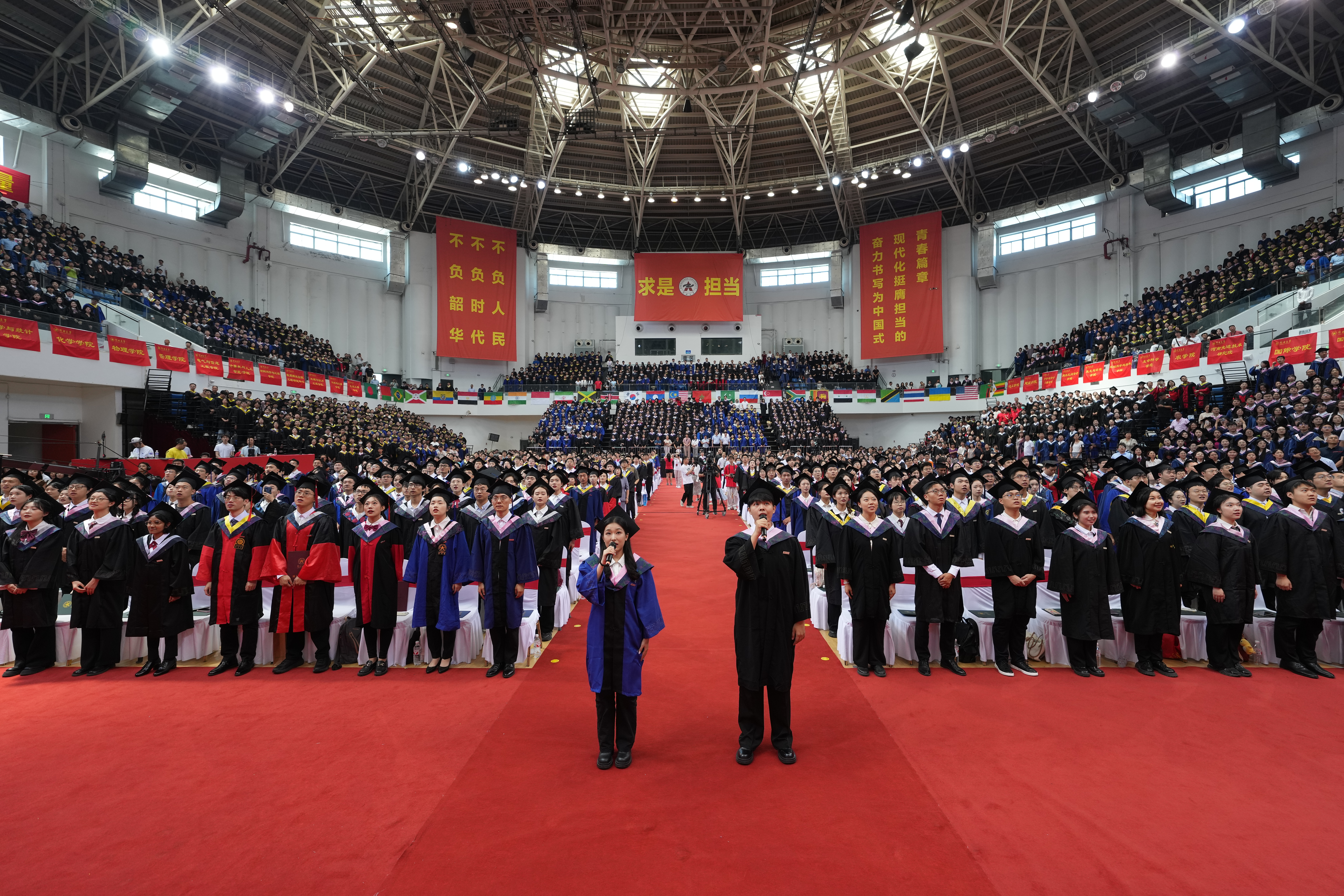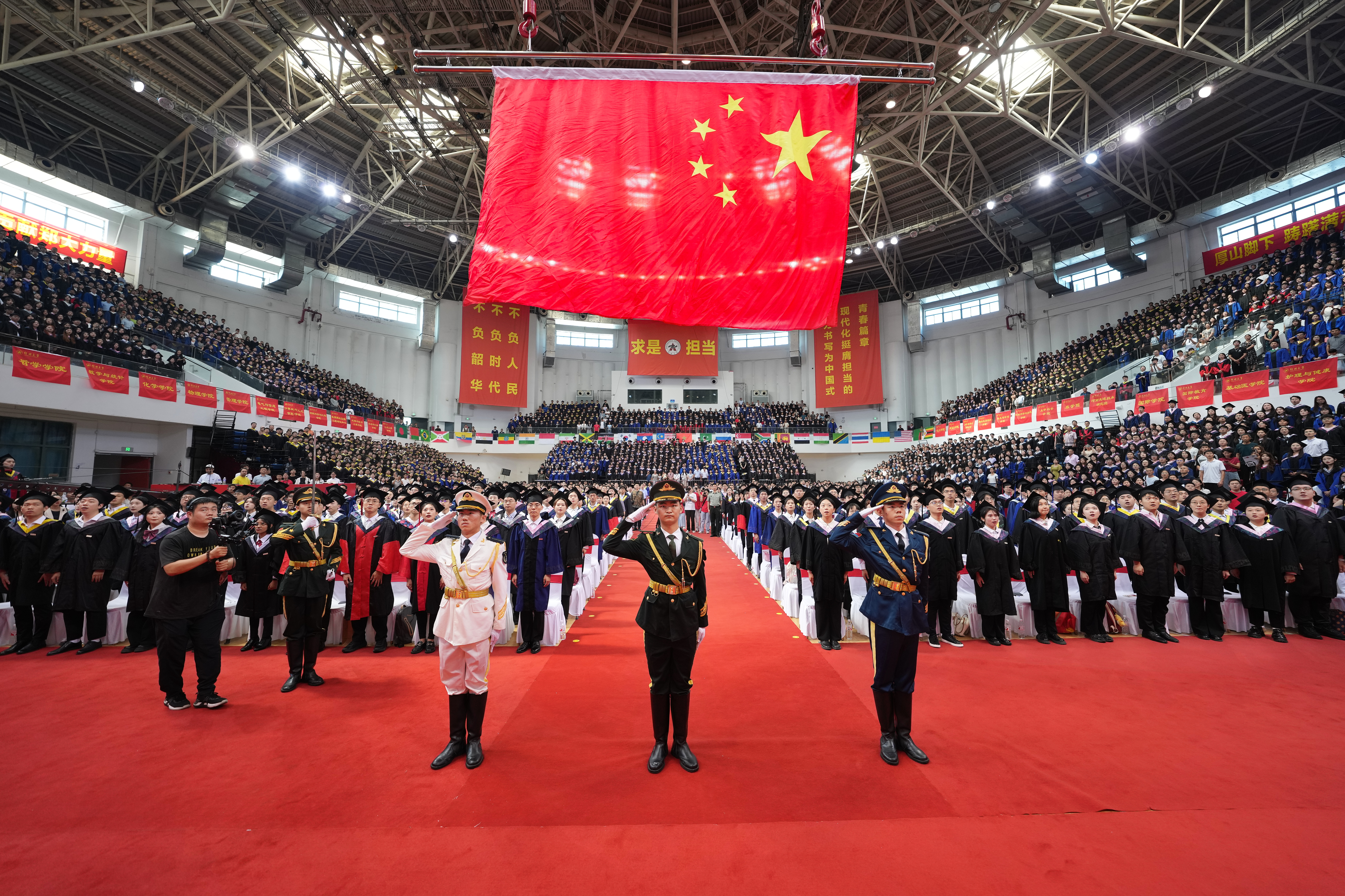 上午9点50分,在雄壮的国歌声中,五星红旗冉冉升起,bat365在线中国官网登录入口2024年毕业典礼暨学位授予仪式正式拉开帷幕。