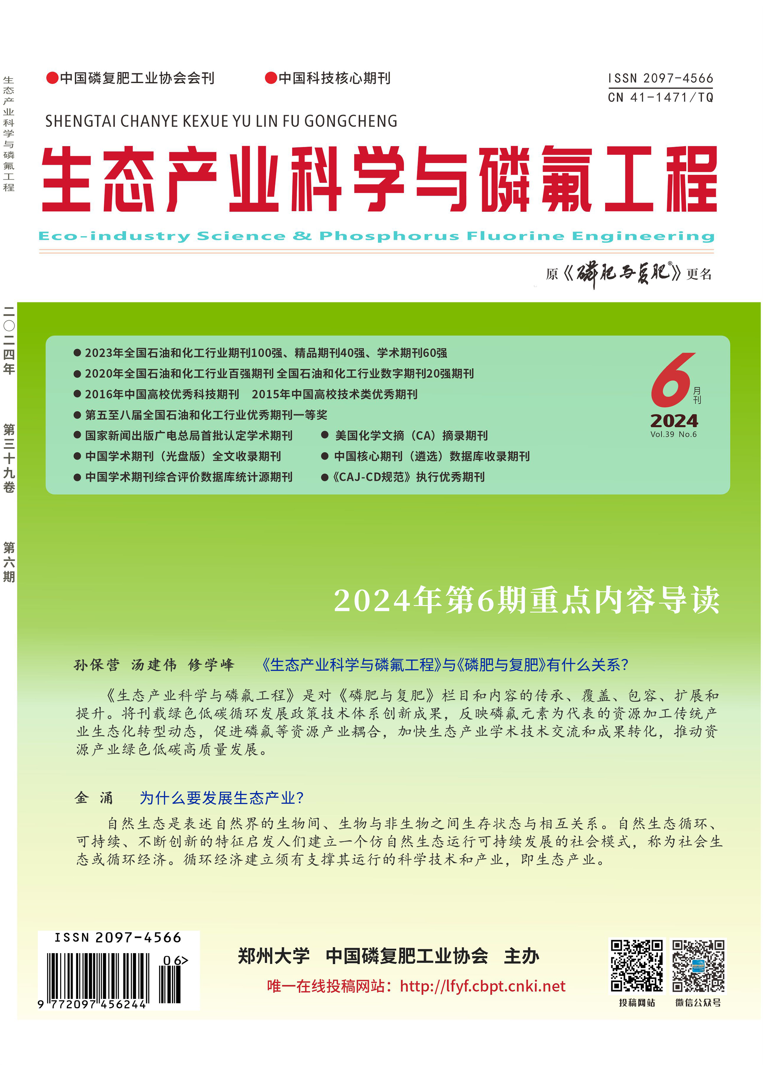 《生态产业科学与磷氟工程》是从仅局限于磷资源加工磷复肥特殊工业领域,向磷氟元素为代表的资源加工流程型一般工业领域的扩展。更名后的期刊从更宽广的视野、更高远的层面,更深厚的内涵,加强选题策划,突出资源加工流程型工业发展重点,围绕国家重大科技工程和产业关键技术,着眼战略前沿领域基础科学研究和交叉融合技术开发,培育发展壮大战略新兴产业和未来产业。其办刊宗旨:刊载绿色低碳循环发展政策、技术体系创新成果,反映磷氟元素为代表的资源加工传统产业生态化转型动态,促进磷氟等资源产业耦合,加快生态产业学术技术交流和成果转化,推动资源产业绿色低碳高质量发展。开设的主要栏目包括简评与要讯、新质生产力与产业态势、研究开发与生态设计、磷及关联产业工艺创新、提质增效产品创制技术、磷氟产业耦合与高端材料创制、减污降碳协同与资源全元素高效利用、健康保育与环境修复、产业赋能与业态融合等。