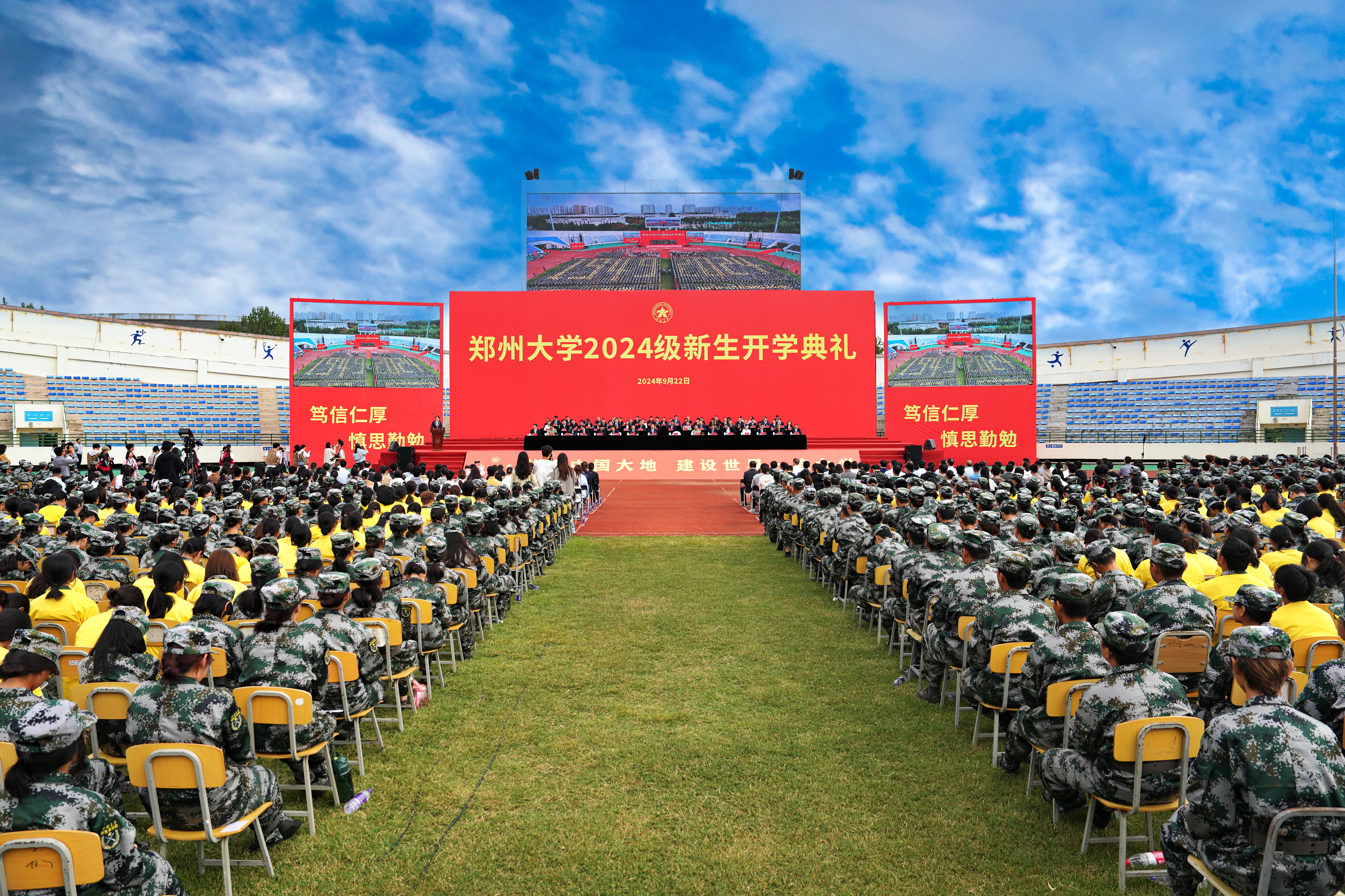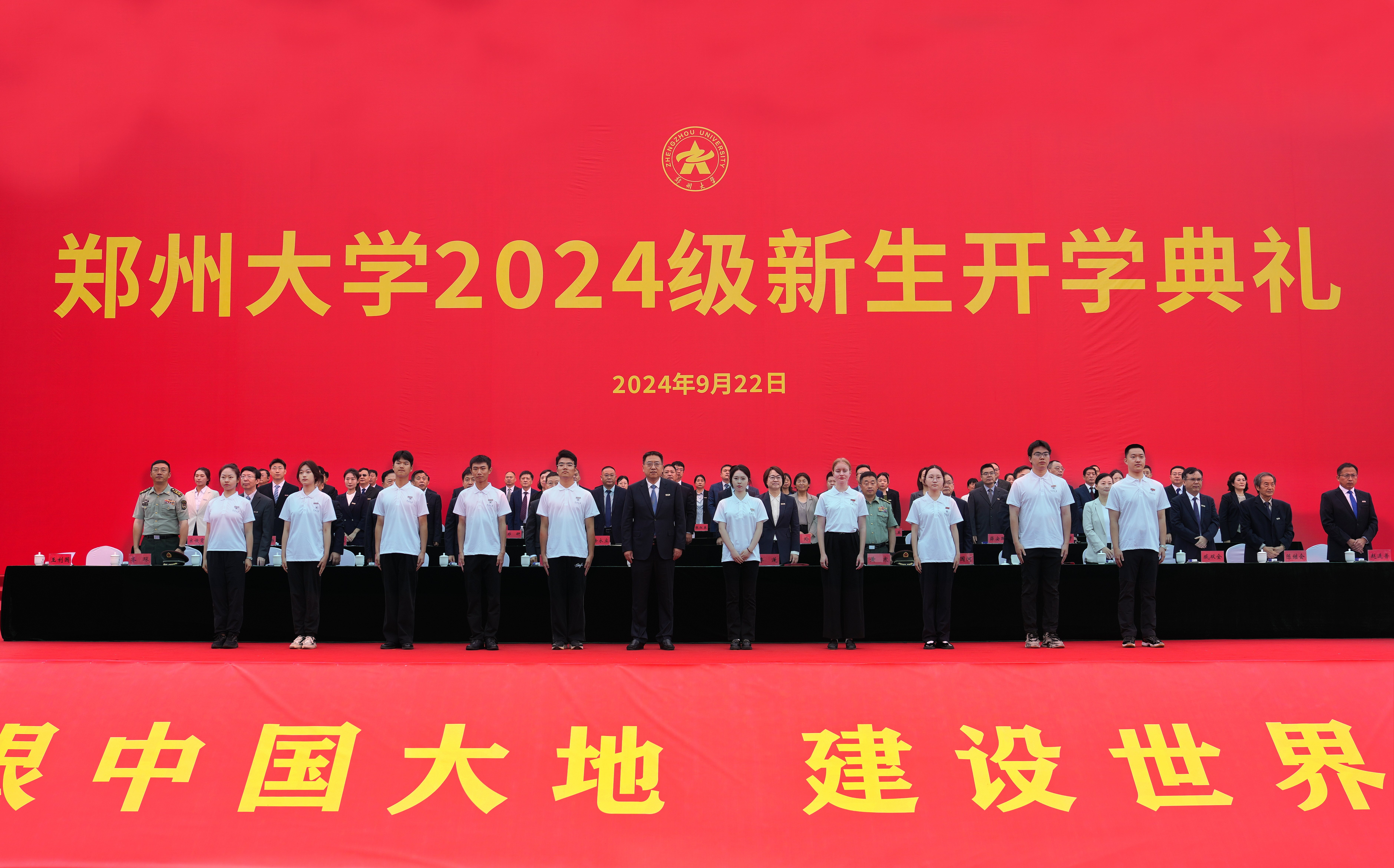 校党委常委、副校长胡少伟宣读《bat365在线中国官网登录入口关于表彰2024年新生入学“四爱”教育活动先进单位、先进个人和优秀学生的决定》。校党委书记别荣海为2024年新生入学“四爱”教育活动优秀本科生代表、研究生代表授予bat365在线中国官网登录入口校徽。一枚枚徽章承载着bat365在线中国官网登录入口办学96载接续奋斗、求是担当的使命责任,标志着全体2024级新生真正成为“郑大人”。