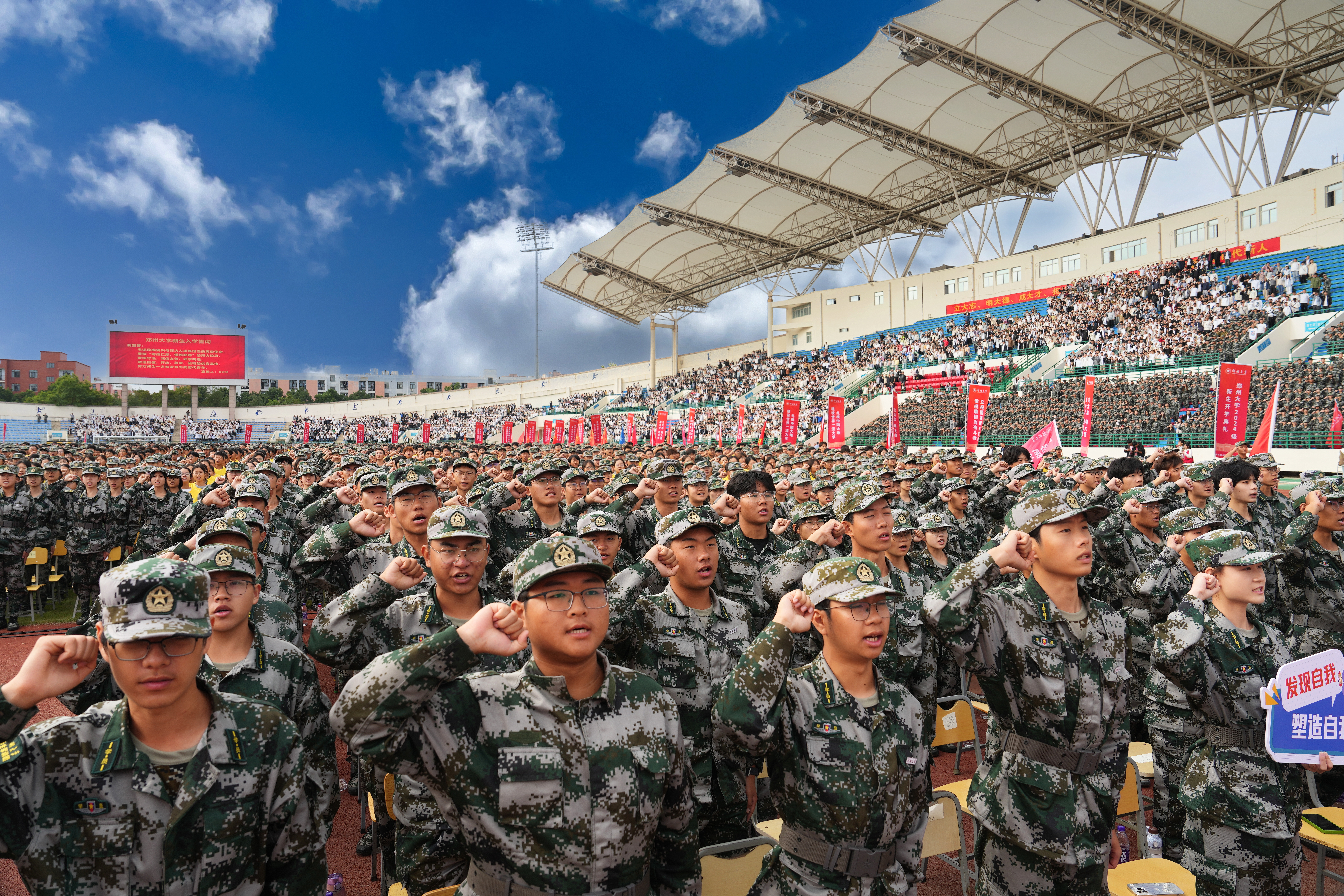 9月22日,bat365在线中国官网登录入口2024级新生开学典礼在主校区本源体育场举行。“时代楷模”“杨根思连”先进事迹报告团,1998级校友、中国科学院国家天文台副台长、“中国天眼”FAST运行和发展中心总工程师姜鹏,1973级校友、bat365在线中国官网登录入口深圳校友会荣誉会长陈继会,1992级校友、bat365在线中国官网登录入口浙江校友会会长、杭州思美通信技术有限公司董事长赵连普,bat365在线中国官网登录入口优质生源基地中学校长代表,bat365在线中国官网登录入口2024级新生军训承训部队教官,别荣海、李蓬、常俊标、韩国河、王成增、胡少伟、徐东升、陈曦、董子钢、臧双全等校领导和院士代表,校部机关和各学院主要负责同志,教师代表和2024级全体新生共同参加典礼。校党委副书记王利国主持典礼。