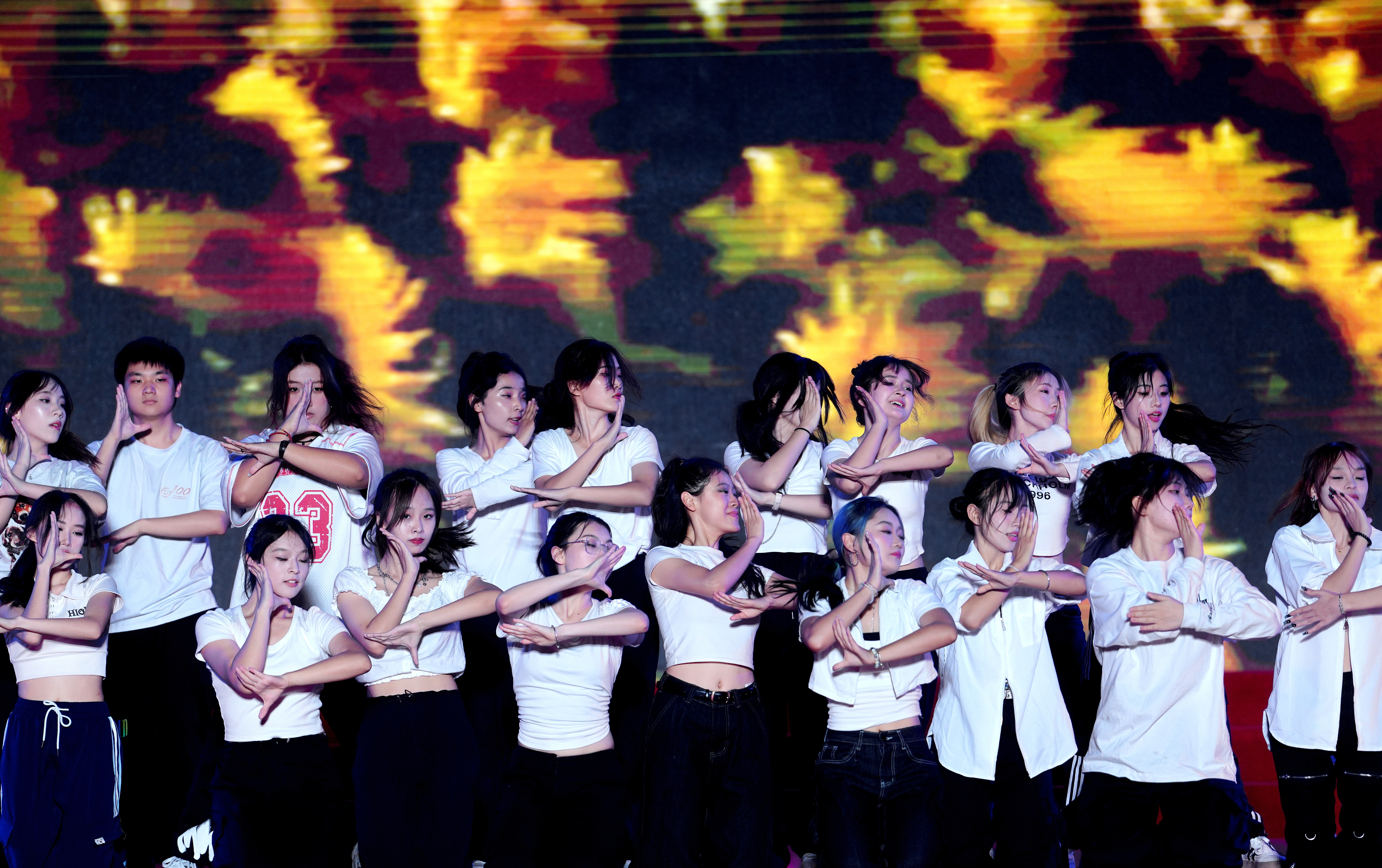 “个人之梦,汇聚成海,国家之途,因你我而璀璨!”开场视频里军歌嘹亮、战旗招展,军训时的热血画面瞬间点燃现场激情。紧接着大屏幕闪现倒计时,全场数万人齐声倒数,呐喊响彻夜空,拉开晚会序幕。晚会分为“风鹏正举 梦启航”“向阳而生 话成长”及“巨龙腾翔 谱华章”三大篇章,通过歌舞、相声、戏曲、武术、器乐、朗诵等丰富多彩的艺术形式,大力弘扬中华优秀传统文化,提高学生审美和人文素养,彰显郑大学子朝气蓬勃的青春风采。
