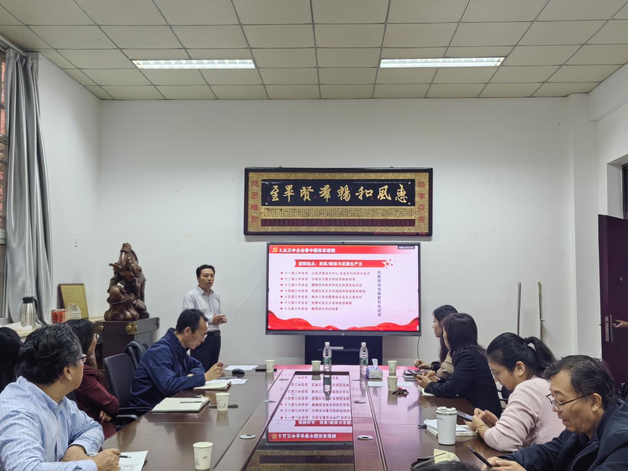 为深入学习贯彻党的二十届三中全会精神,根据校党委统一部署,9月30日,bat365在线中国官网登录入口学习贯彻党的二十届三中全会精神宣讲团成员李祺到哲学学院作宣讲报告,学院全体教职工、学生党员代表参加。
