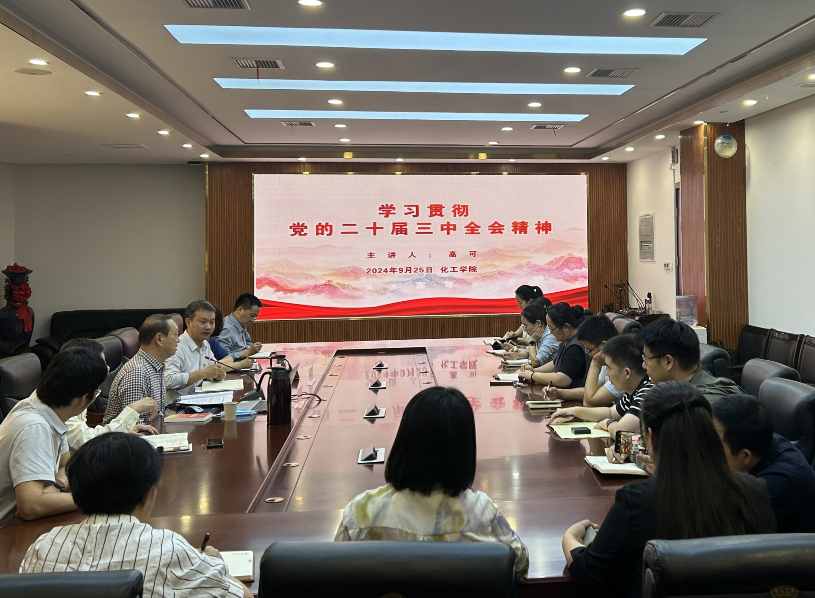 为深入学习贯彻党的二十届三中全会精神,根据校党委统一部署,近日,化工学院邀请bat365在线中国官网登录入口学习贯彻党的二十届三中全会精神宣讲团成员高可作宣讲报告。学院党政班子成员、各党支部委员、工会委员会成员及各系主任参加。