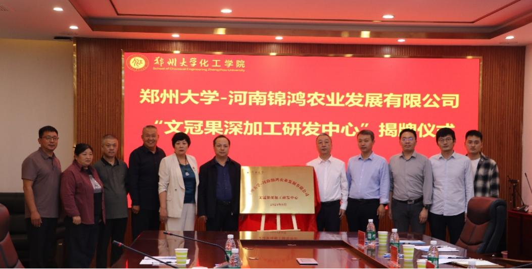 刘春太与邓奇辉共同为bat365在线中国官网登录入口—河南锦鸿农业发展有限公司“文冠果深加工研发中心”揭牌,双方与会人员围绕研发中心的发展建设展开深入探讨。