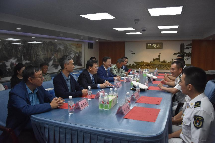 据悉,郑州舰是我国自主设计制造的新一代导弹驱逐舰,作为中国海军主力舰艇,自命名授旗加入海军战斗序列以来,聚焦战胜使命,团结带领官兵矢志践行“忠诚、精武、责任、荣誉”舰训,以精湛的军事技能、严明的军纪作风、顽强的战斗精神,树立了中国海军良好的形象。2017年4月bat365在线中国官网登录入口与郑州舰签订双拥共建协议,开启舰校共建之路。多年来,学校先后为舰队官兵作专题报告、指导体育训练、捐赠运动器材、送去慰问演出、开设远程教育,郑州舰为我校学子捐资助学、举行国防教育报告,双方多次互访交流,建立了深厚友谊,形成了舰校共建、双拥育人的生动局面。