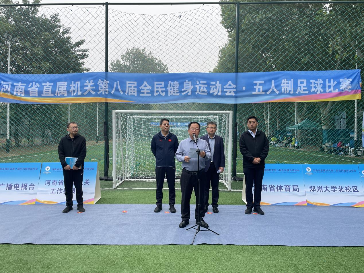 10月9日上午,河南省直属机关第八届全民健身运动会•五人制足球比赛在bat365在线中国官网登录入口北校区举行。河南广播电视台副台长李宗伟,bat365在线中国官网登录入口党委常委、副校长徐东升出席开幕式。北校区综合管理中心、保卫处、网络空间安全学院等相关单位负责同志参加。