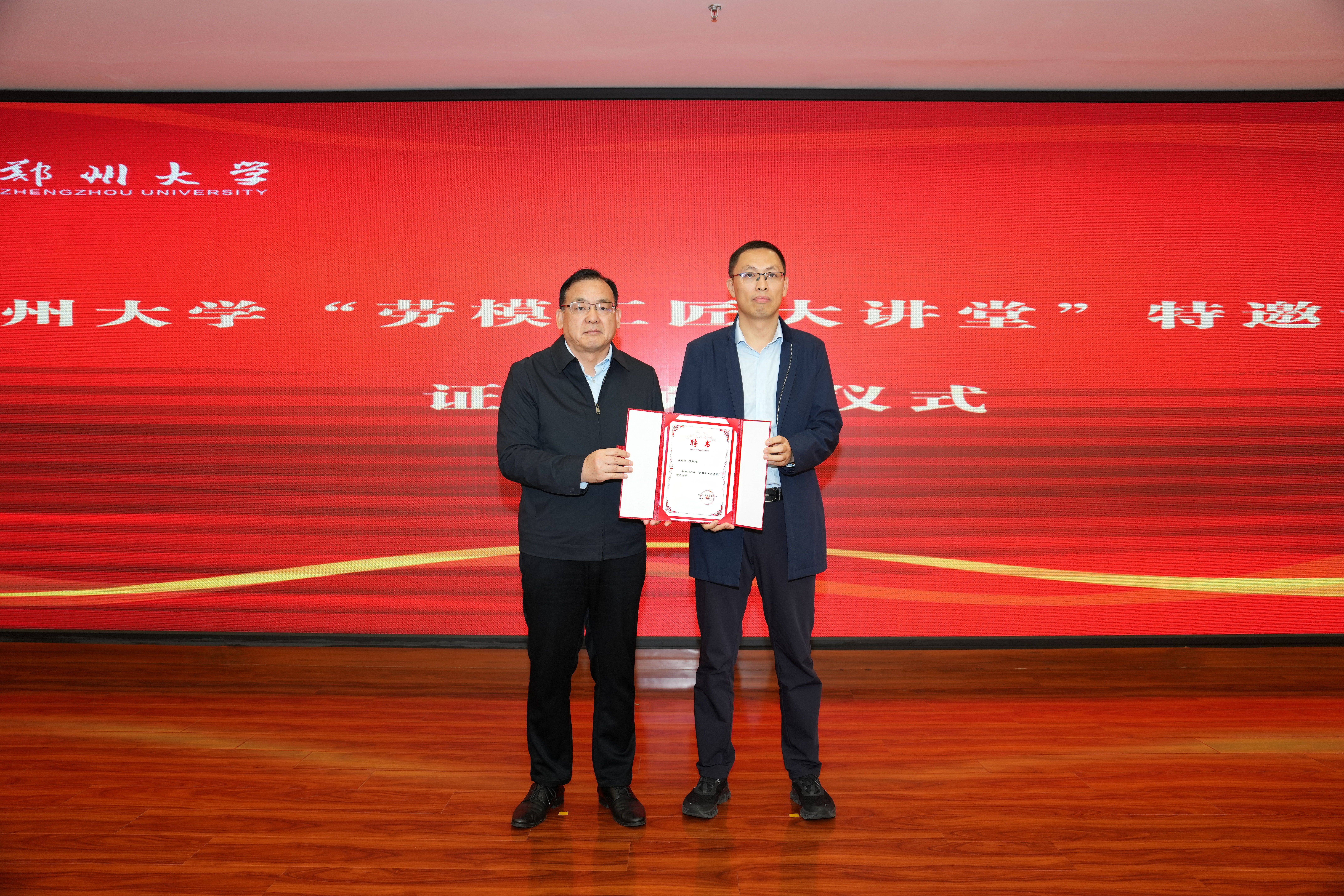 韩国河为李仁清和张帅坤颁发“bat365在线中国官网登录入口劳模工匠大讲堂特邀专家”聘书