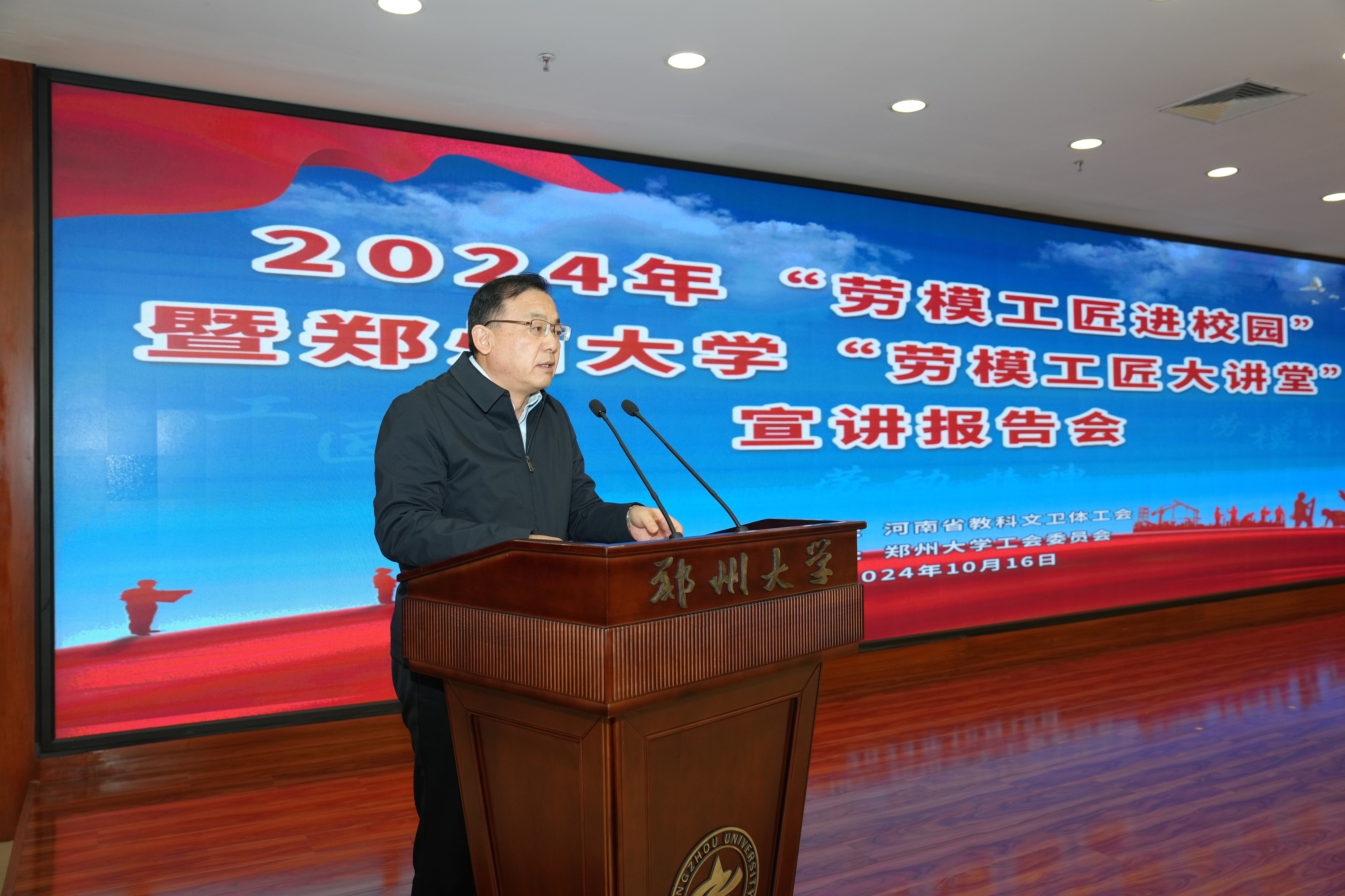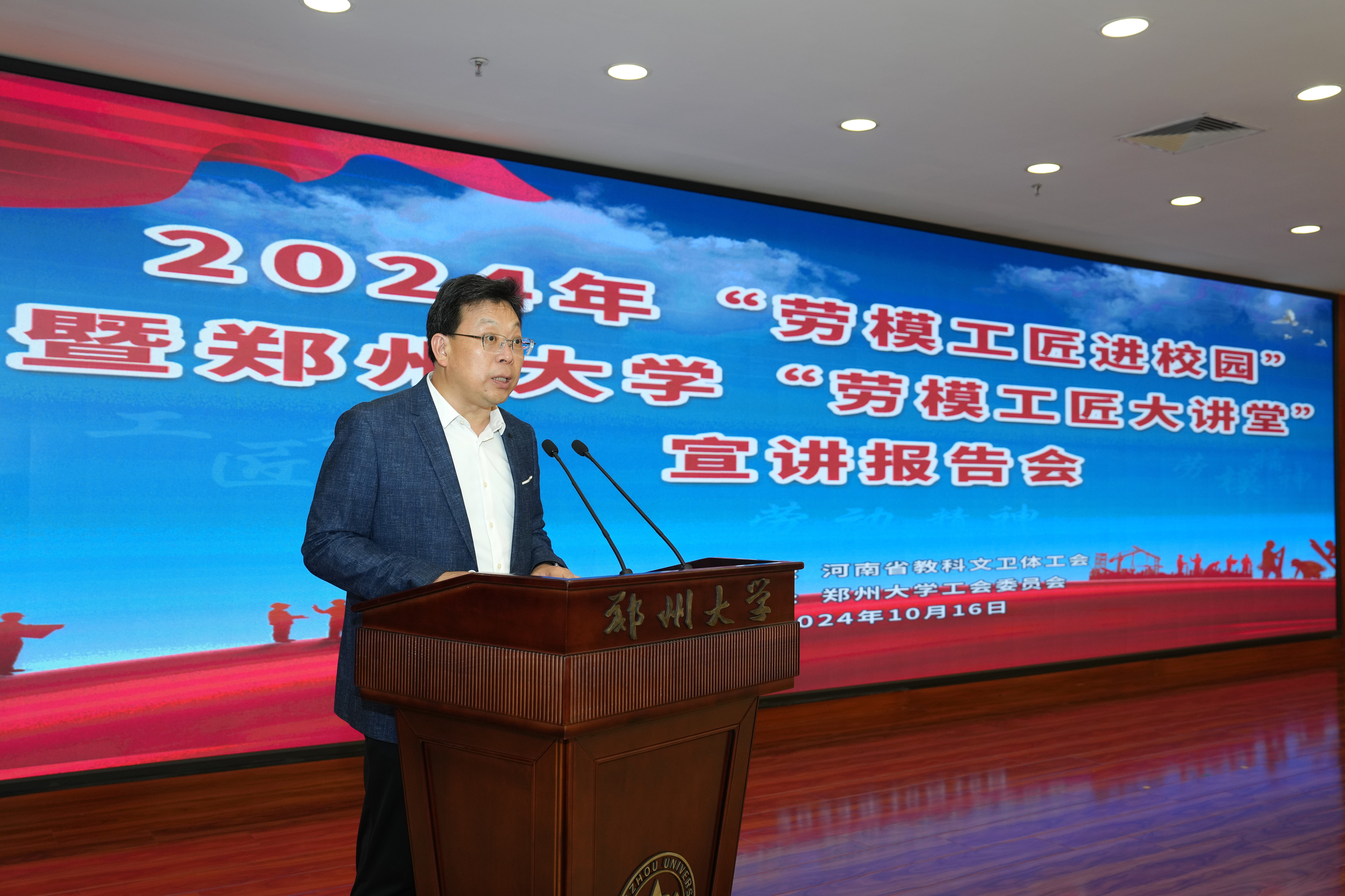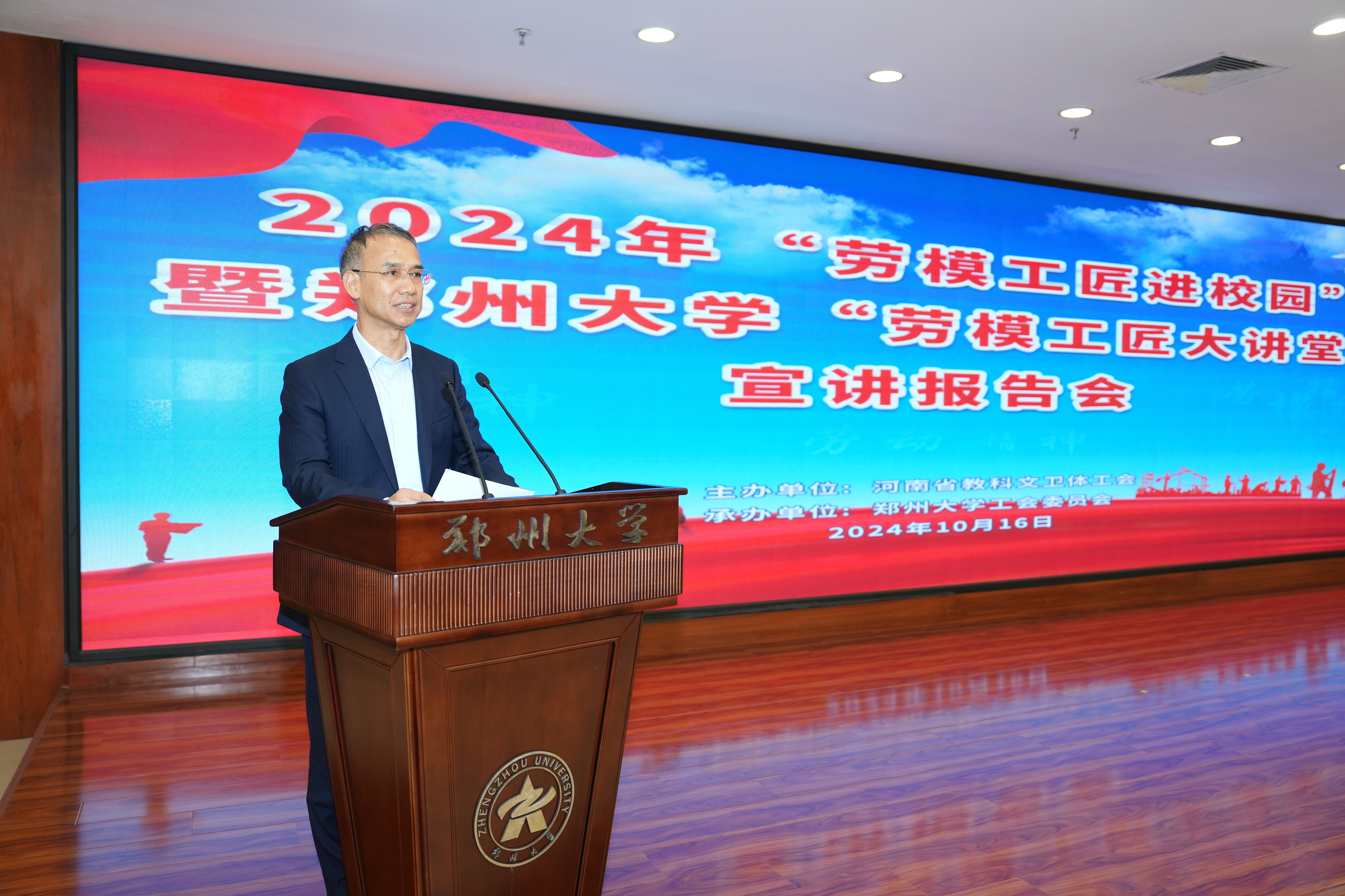 10月16日,bat365在线中国官网登录入口在主校区举办2024年“劳模工匠进校园”暨“劳模工匠大讲堂”报告会。省总工会党组书记、常务副主席李拴成,校党委书记别荣海,党委副书记、工会主席韩国河出席。国家级古籍修复技艺传习导师,河南省非物质文化遗产高浮雕传拓技艺传承人,2016年大国工匠年度人物李仁清,中国铁建重工集团股份有限公司一级研究员、掘进机研究院副院长,正高级工程师,2023年大国工匠年度人物张帅坤分别作报告。省总工会办公室、省教科文卫体工会负责同志,学校基层工会、教师和学生代表参加报告会。校党委副书记王利国主持报告会。
