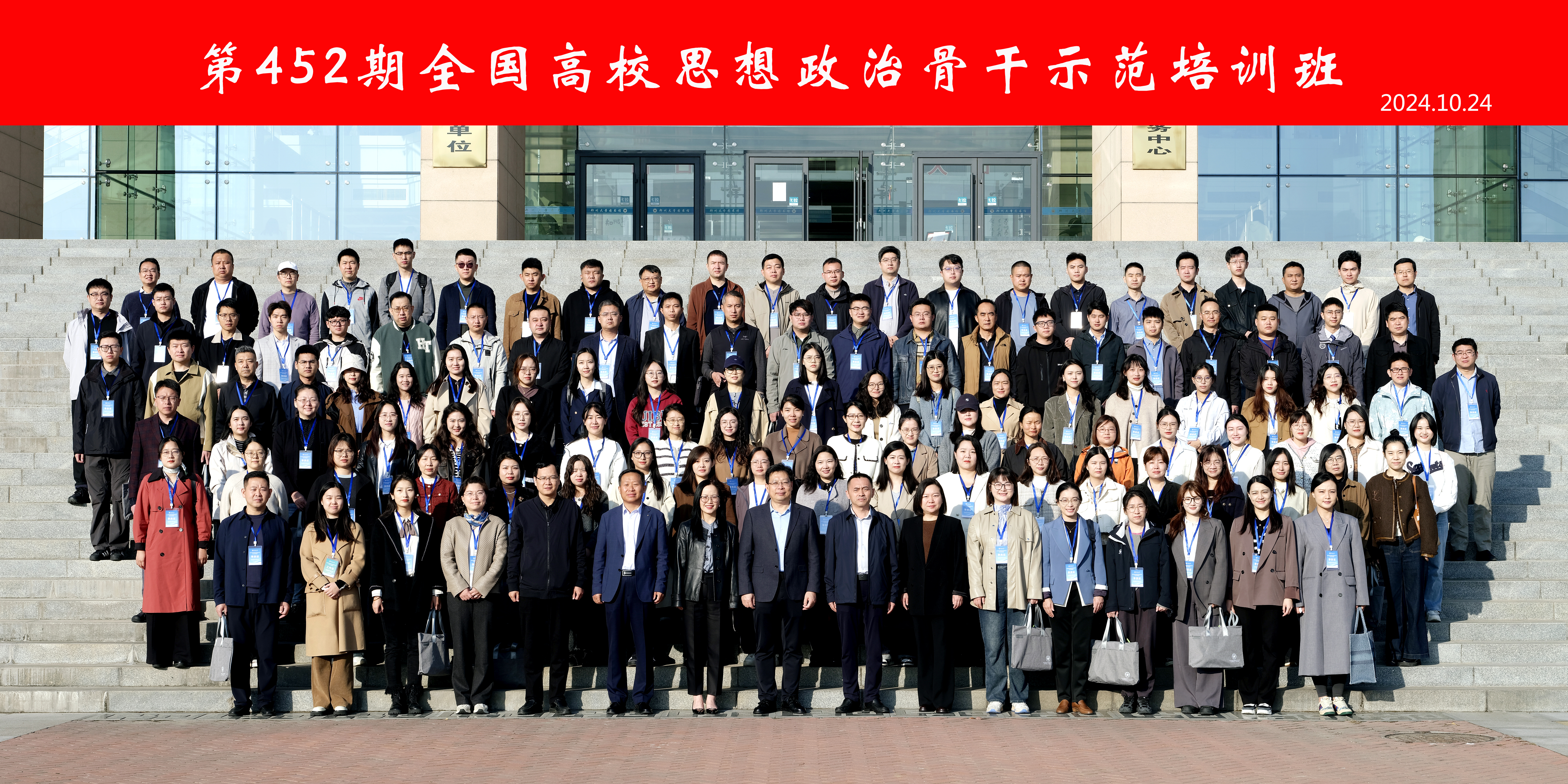 10月24日至26日,由教育部思想政治工作司主办,教育部高校思想政治工作队伍培训研修中心(bat365在线中国官网登录入口)承办的第452期全国高校思想政治工作骨干示范培训班在郑州举行。中国大学生在线、全国高校思政网副主任郑骊君,河南省教育厅思政处副处长任龙云,bat365在线中国官网登录入口党委副书记王利国出席,党委学生工作部、学生处和中心的相关负责同志,以及来自全国31个省区、108所高校的129名思想政治工作骨干和优秀辅导员代表参加开班仪式。