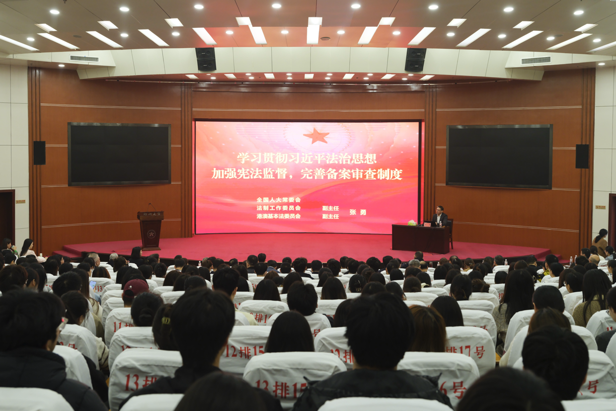 随后,张勇以《学习贯彻习近平法治思想加强宪法监督完善备案审查制度》为题开展了专题讲座。他全面介绍了宪法监督制度的作用和意义,新时代备案审查制度建设的发展与成效、面临的挑战和下一阶段着力推进的工作,明确提出了完善和加强备案审查制度的主要任务和具体要求。