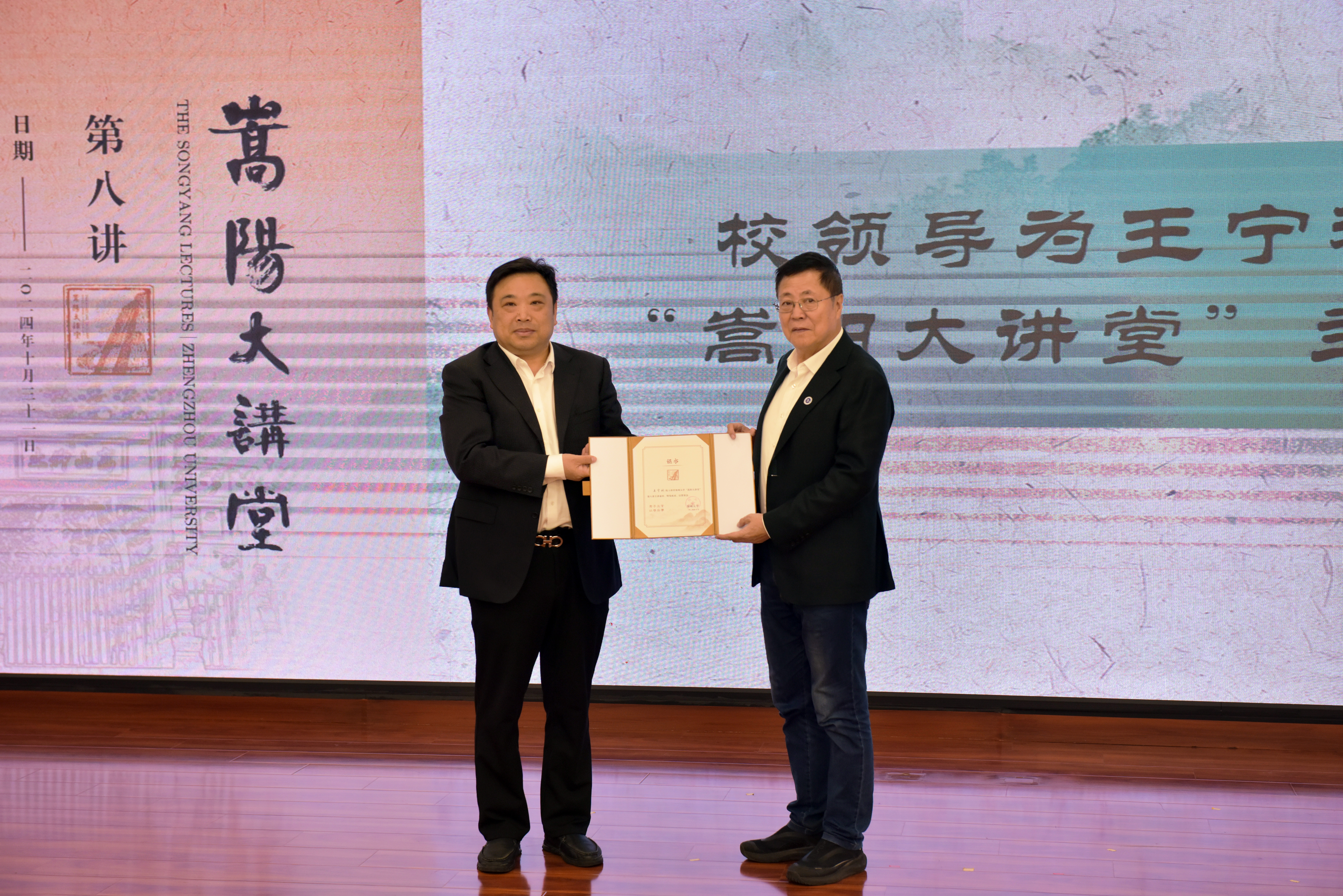 胡少伟为王宁利颁发“嵩阳大讲堂”主讲嘉宾证书