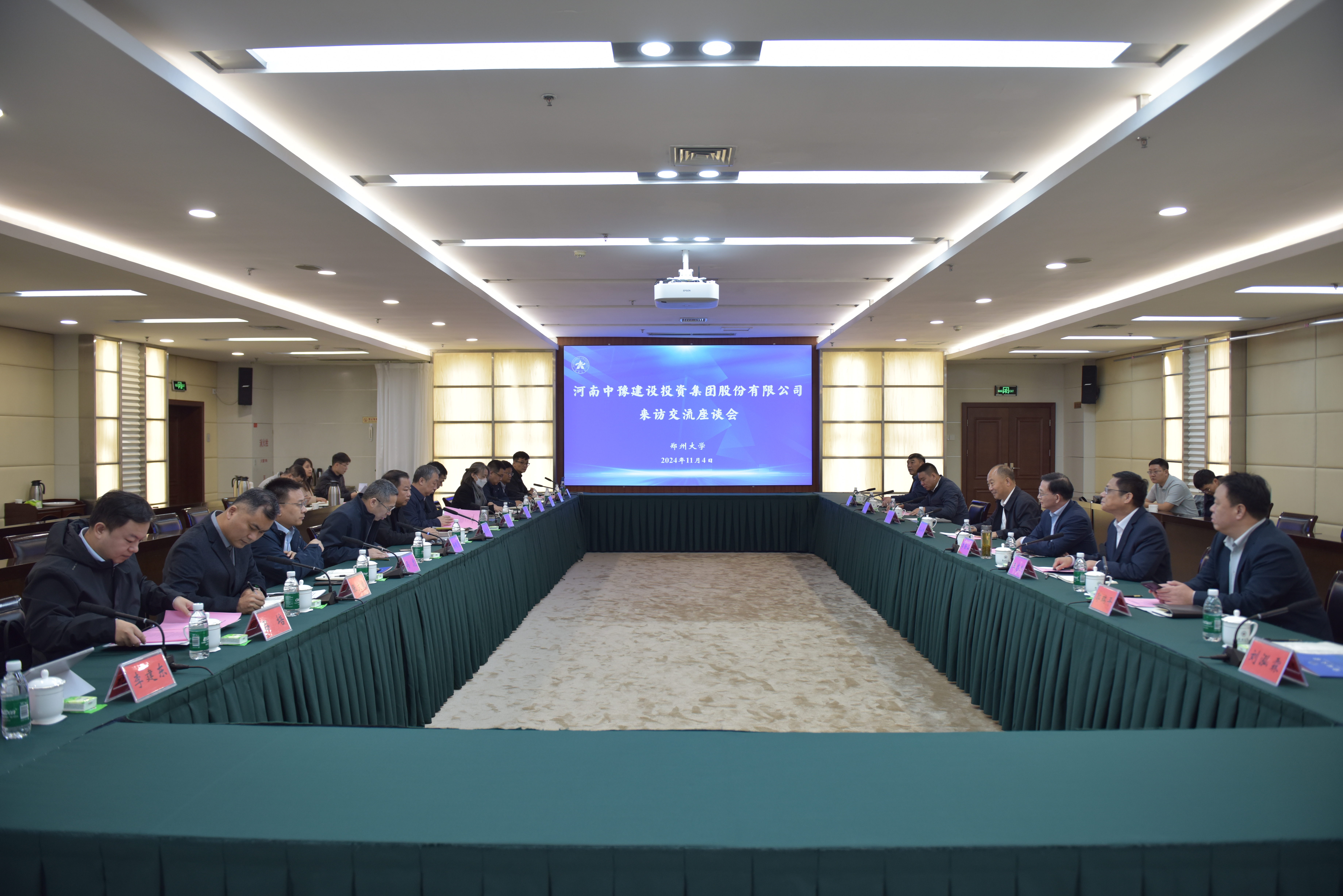 11月4日,河南中豫建设投资集团股份有限公司党委书记、董事长高山林一行来校调研交流。bat365在线中国官网登录入口校长李蓬院士会见高山林一行。学校召开交流座谈会,校党委常委、副校长徐东升,副校长刘春太出席,科学技术研究院、基建处、计算机与人工智能学院、土木工程学院、建筑学院负责同志参加座谈会。会议由科学技术研究院主要负责同志主持。