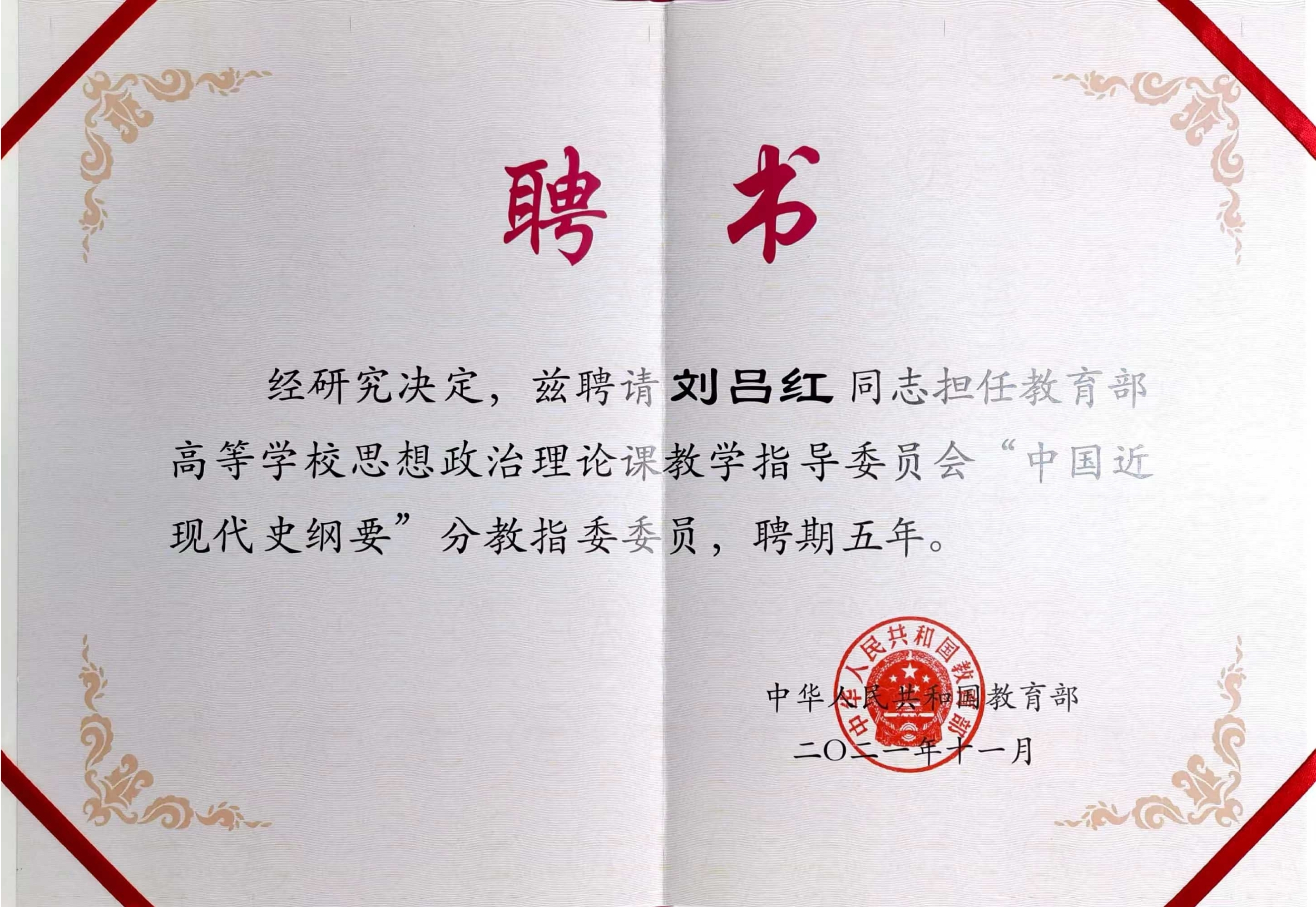 获聘教育部高等学校思想政治理论课教学指导委员会委员