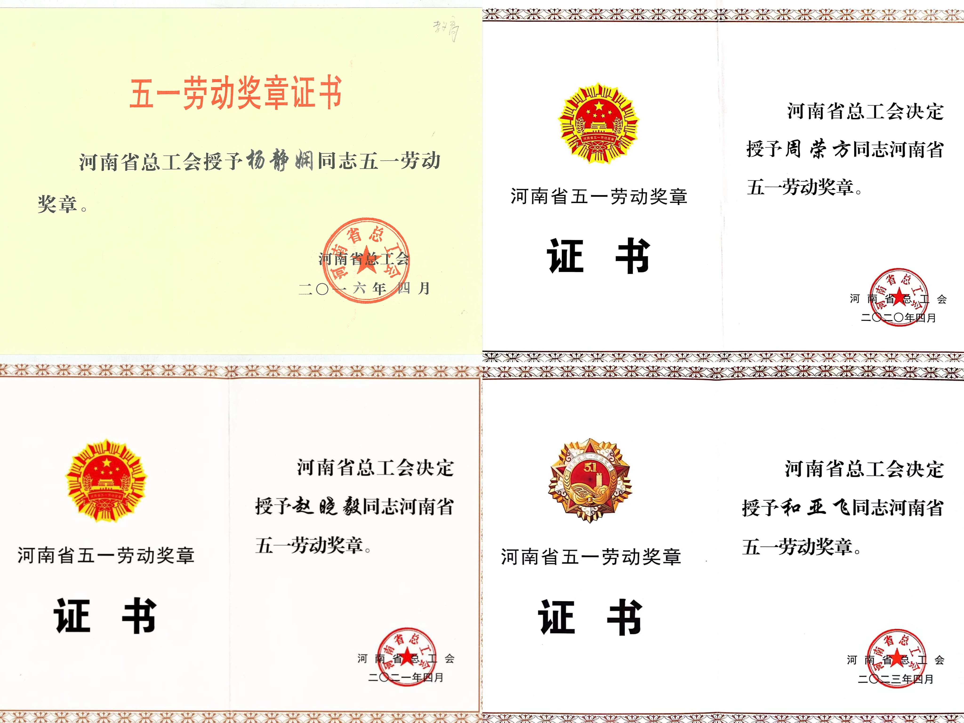 获河南省五一劳动奖章