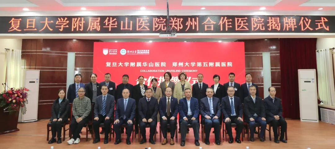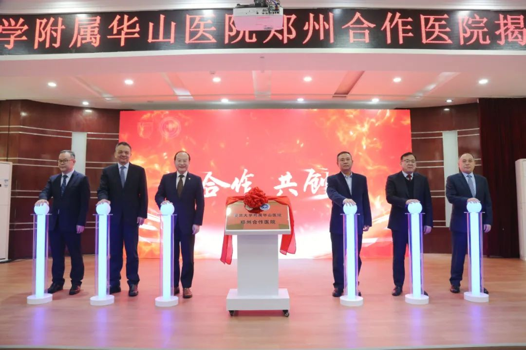 与会领导共同为复旦大学附属华山医院郑州合作医院揭牌