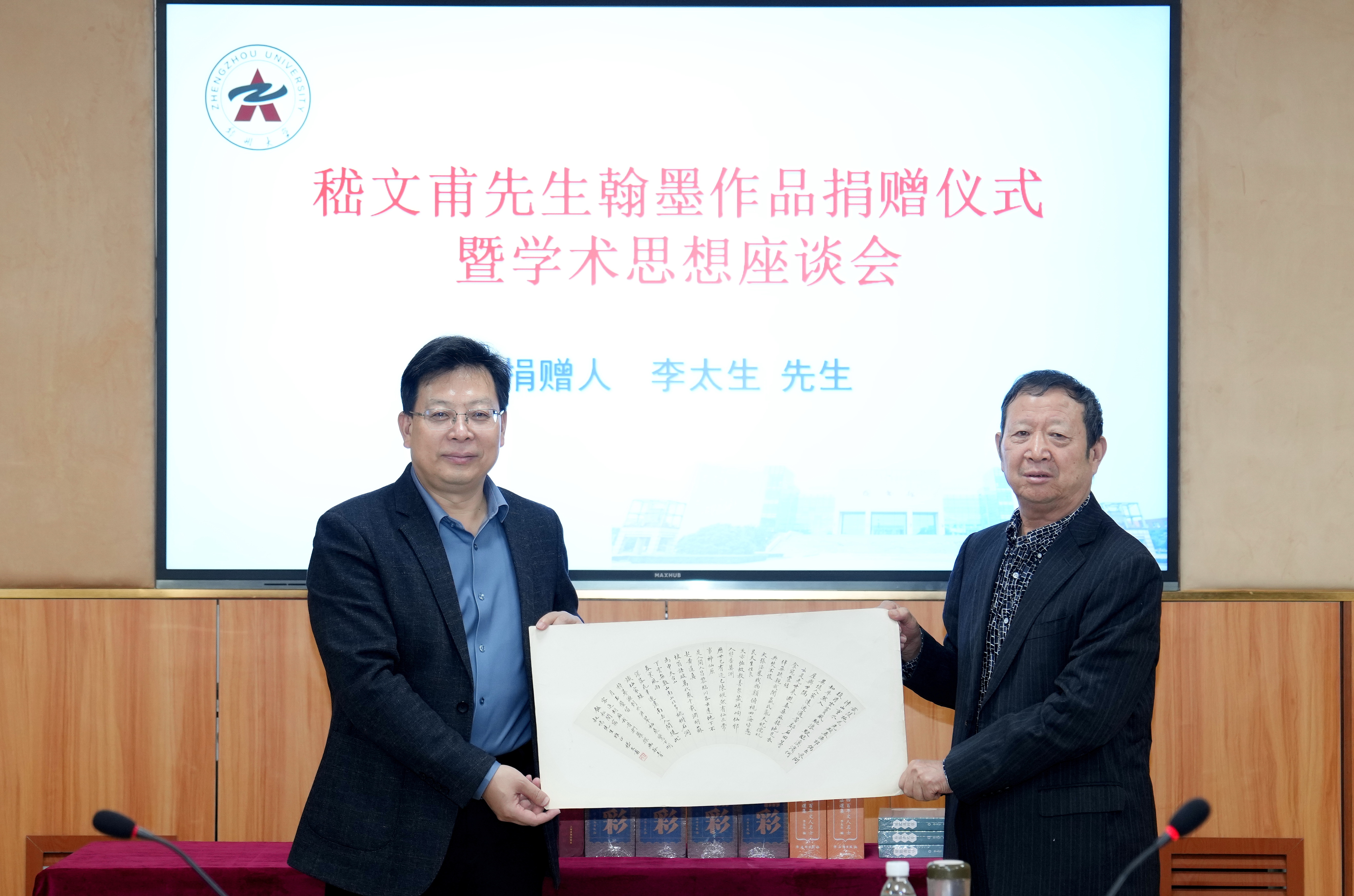 会上,崔慕岳追忆了嵇文甫先生的学术发展历程,以及早年加入中国共产党为党和国家进步事业不懈奋斗的光辉业绩。李太生在发言中讲述了其收藏、捐赠两件嵇文甫先生翰墨作品由来及期望。王利国代表学校接收捐赠,并回赠捐赠证书。