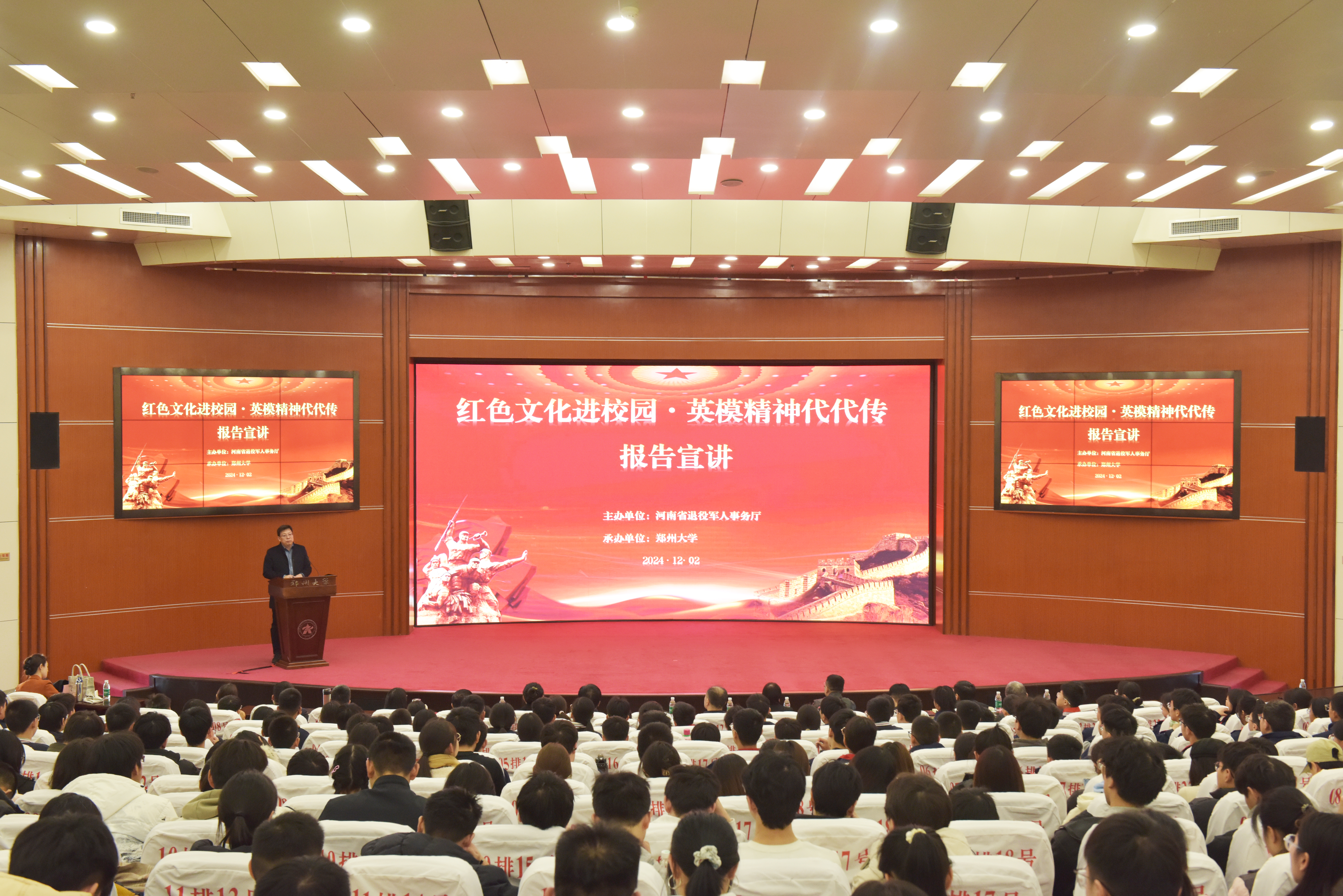 为深入贯彻落实习近平总书记关于传承红色基因、赓续红色血脉的重要指示精神,推进红色文化有效融入学校思想政治教育,12月2日,由河南省退役军人事务厅主办的“红色文化进校园 英模精神代代传”宣讲活动在bat365在线中国官网登录入口举行,8名新时代全国模范退役军人、战斗英雄和红色宣传基地金牌讲解员依次作宣讲报告,讲述英烈故事,弘扬英模精神,为师生带来一堂精彩的“大思政课”,引导师生厚植爱党、爱国、爱军、爱人民、爱社会主义的深厚情感。