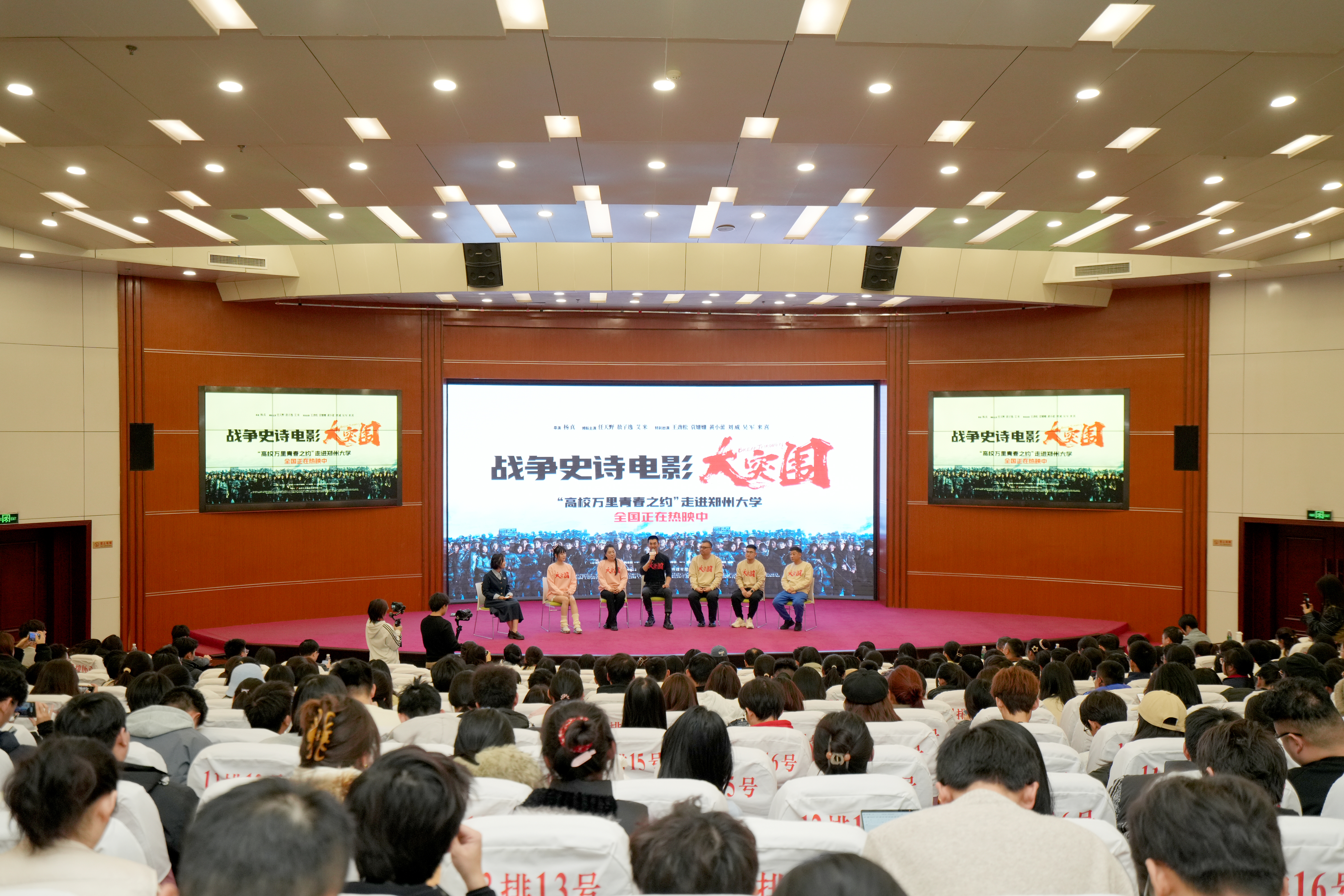 “今天是全国路演的第二站,之所以选择郑大,是因为郑大成就大、师生多,与当年的抗大一样,有着优良的办学传统和大学精神。”“谨将影片献给正青春的你们!”观影结束后,主创团队上台与师生互动交流,就创作灵感、价值内核、角色塑造、心路历程等分享了幕后故事。