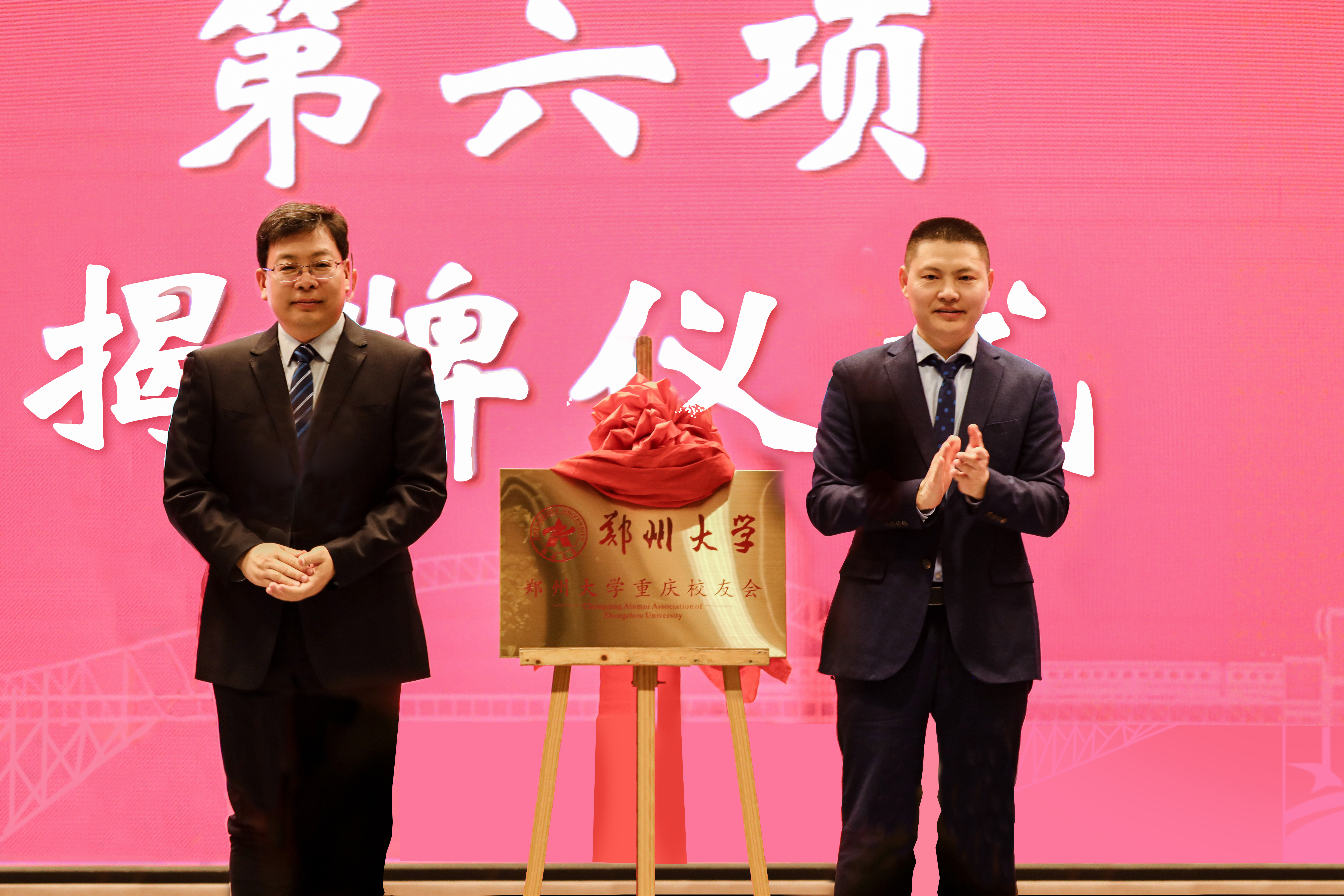 王利国致辞并为重庆校友会揭牌、授旗、赠送校训纪念品。他代表学校对重庆校友会的成立致以热烈祝贺,向在渝校友致以亲切问候。他介绍了bat365在线中国官网登录入口的发展情况以及近年来取得的成就,并对重庆校友会的未来发展提出四点希望:一是希望校友会能够强化服务意识,积极为校友们提供多方面的支持与帮助。二是希望校友会充分发挥桥梁纽带作用,促进校友之间的资源共享,实现优势互补、合作共赢。三是加强与母校的互动联系,为母校“双一流”建设注入新的活力。四是积极开展校友文化建设,培育郑大特色和重庆地域文化相结合的校友文化。
