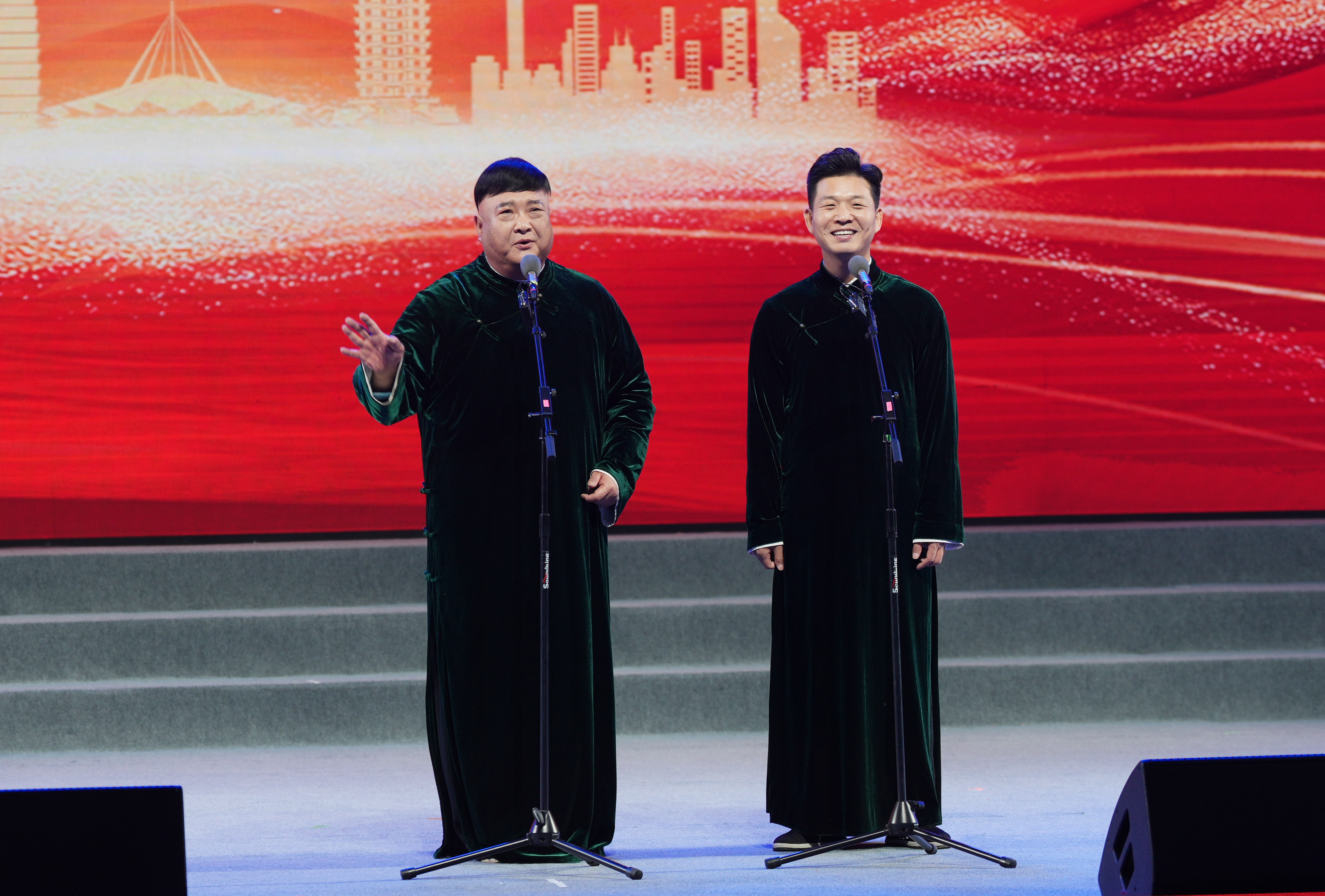 中国曲协副主席、河南省曲协主席、国家一级演员、著名相声表演艺术家范军和搭档明男男表演相声