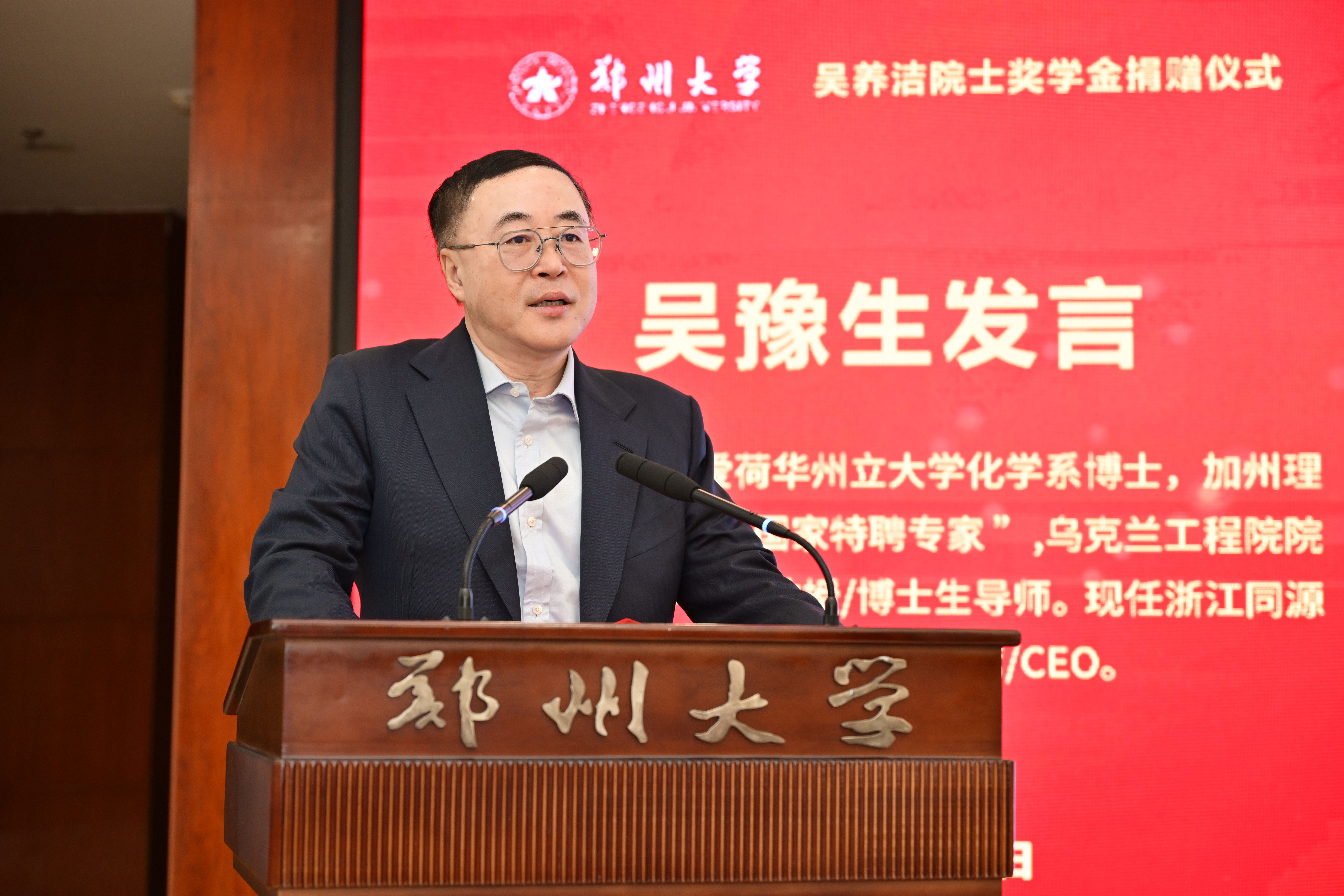仪式上,胡少伟代表学校与吴豫生签订了捐赠协议书,刘春太代表学校向吴豫生赠送纪念品,臧双全代表学校接受奖学金捐赠500万元,并为吴豫生颁发捐赠证书。