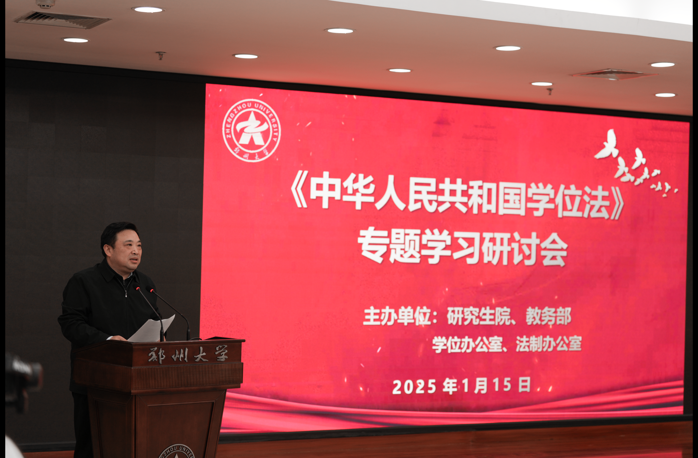 胡少伟指出,新制定的《学位法》全面贯彻落实党的二十大精神和党中央关于学位工作和高层次人才培养的决策部署,对于一体推进教育强国、科技强国、人才强国建设具有重要意义。全校各部门、各单位要深入理解《学位法》的精神实质、基本原则和创新制度,明确学位工作各项管理要求,坚持依法决策,严格依法履职,以贯彻落实《学位法》的成效推进学位工作高质量发展,服务学校一流大学建设。