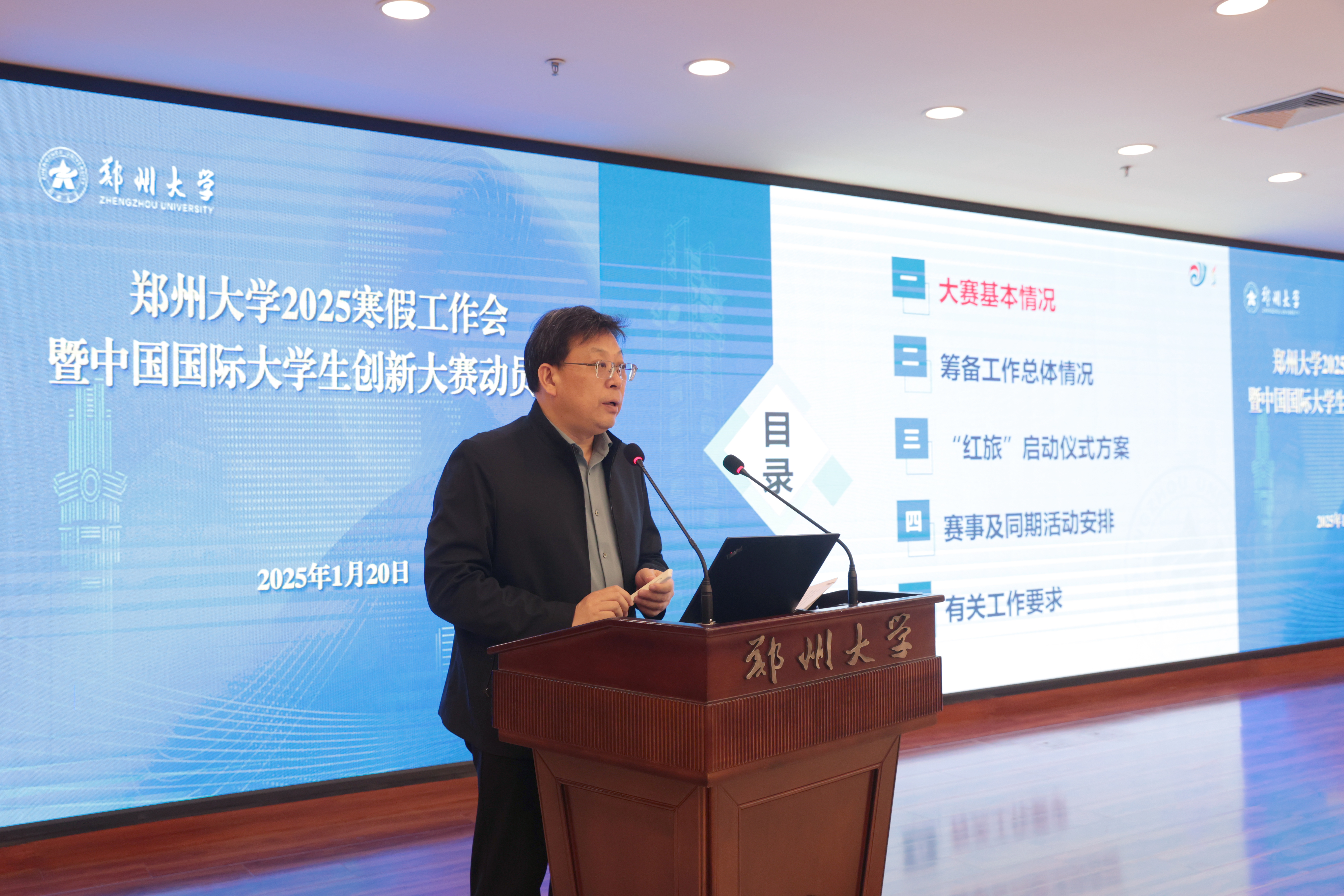校党委副书记王利国通报中国国际大学生创新大赛(2025)筹备情况并动员部署相关工作。他指出,习近平总书记两次给大赛学生回信,充分彰显出党中央对科技创新工作的高度重视和青年一代的深切期许。2025年河南省政府工作报告中提出“办好中国国际大学生创新大赛”,为我们承办大赛指明了目标和方向。全校上下要深入学习贯彻习近平总书记重要回信精神,全面落实教育部和省委省政府相关工作部署,提高站位、明确责任、主动对接、加强协作,高标准高效率组织筹备,力争办出水平办出特色。