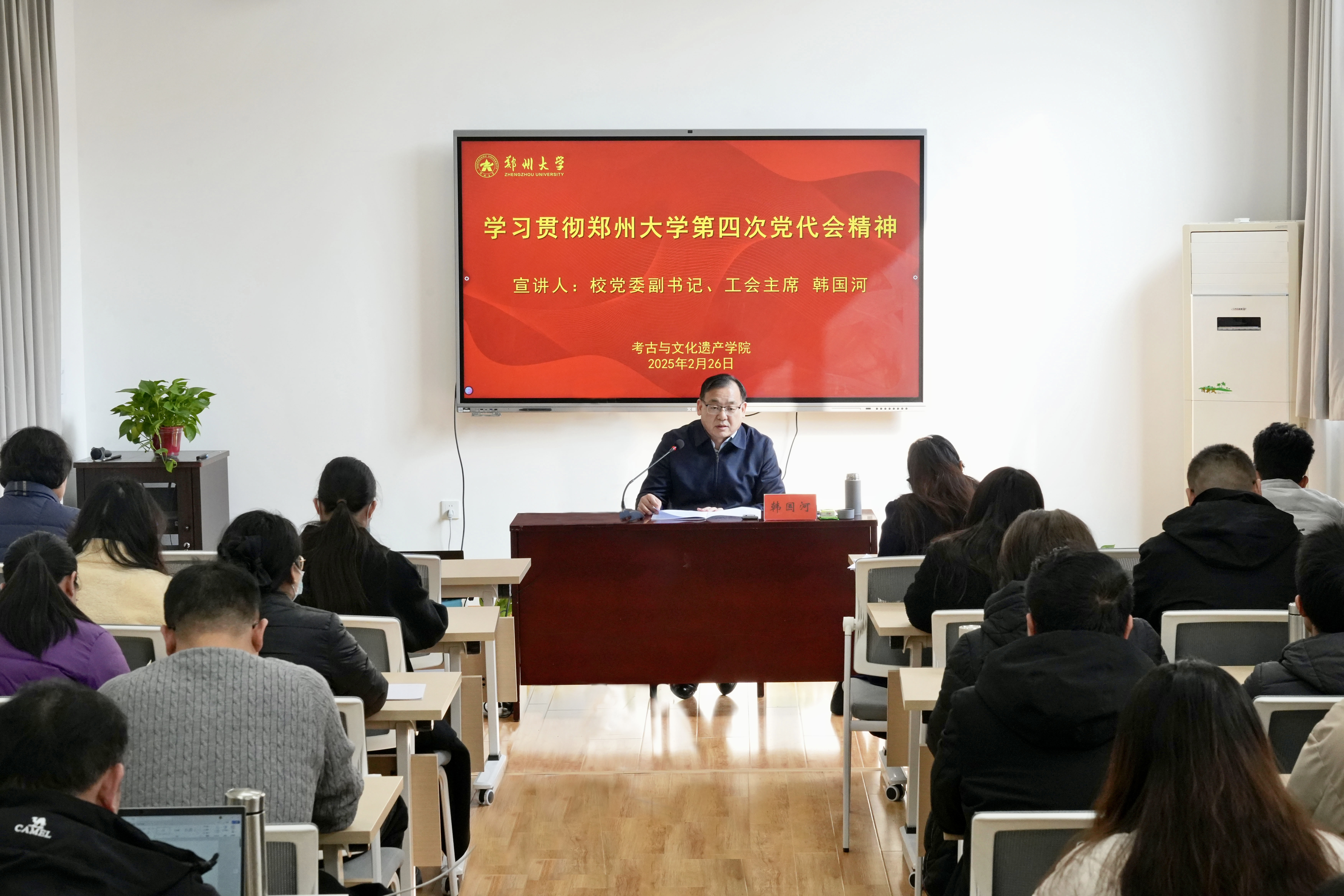 近日,校党委副书记、工会主席韩国河为考古与文化遗产学院师生宣讲bat365在线中国官网登录入口第四次党代会精神。学院全体教职工和本硕博学生党员代表参加宣讲会。考古与文化遗产学院负责同志主持宣讲会。