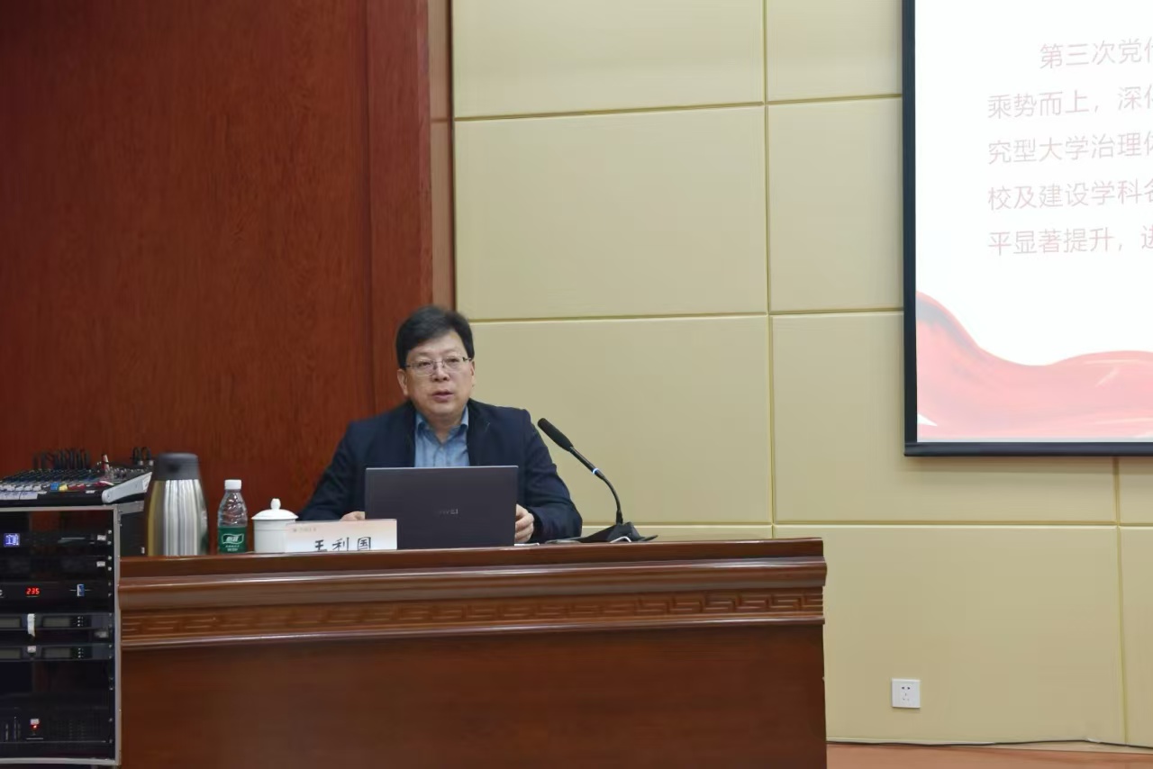 报告会上,王利国从合校以来主要工作和基本经验、全面把握一流大学建设新形势、奋力谱写一流大学建设新篇章、全面加强党的领导和党的建设等四个方面,全面深入解读了第四次党代会精神。他指出,此次党代会是在学校建设中国特色世界一流大学新征程中召开的一次十分重要的会议,具有承前启后、继往开来的深远意义。党代会报告总结了合校特别是第三次党代会以来的成绩经验,凝练了bat365在线中国官网登录入口精神,分析了形势机遇挑战,明确了高水平研究型大学办学定位,谋划了今后五年乃至更长时期发展的总体思路和主要任务,是指导学校未来一个时期发展的纲领性文件,对于进一步加强党的全面领导,抢抓时代重大机遇,融入支撑国家战略,全面深化改革创新,加快提升内涵水平,奋力谱写中国特色世界一流大学建设新篇章,具有重要的指导意义。他号召全体师生要进一步提高政治站位,深刻认识学习贯彻党代会精神的政治意义、战略意义和实践意义,将思想和行动统一到党代会的决策部署上来,把力量凝聚到党代会确定的各项任务上来,为推进学校世界一流大学建设开创新局面。